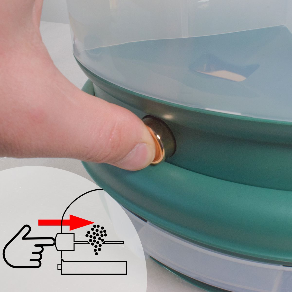 Accesul la boabe se realizeaza prin simpla apasare a butonului fixat sub compartimentul dorit.