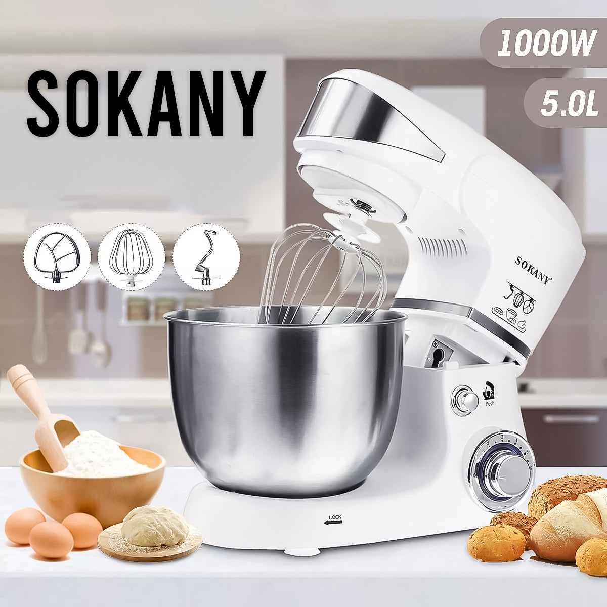 Robot de bucatarie Sokany SC-206, 1000W, bol inox 5L, 6 trepte de viteza, Alb