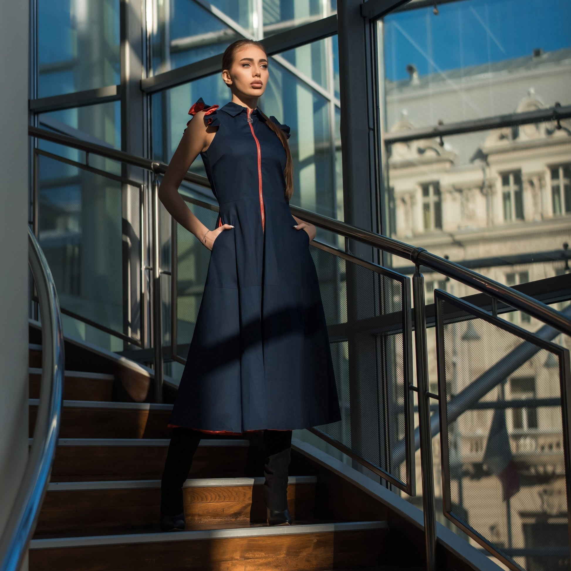 Rochie în croială A, confecționată din poplin și complet dublată cu satin premium roșu