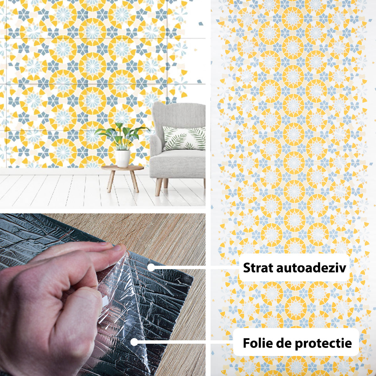 Rola panou autoadeziv, Naimeed D5706, design modern, 2mm grosime, 60x300cm, Galben/Albastru