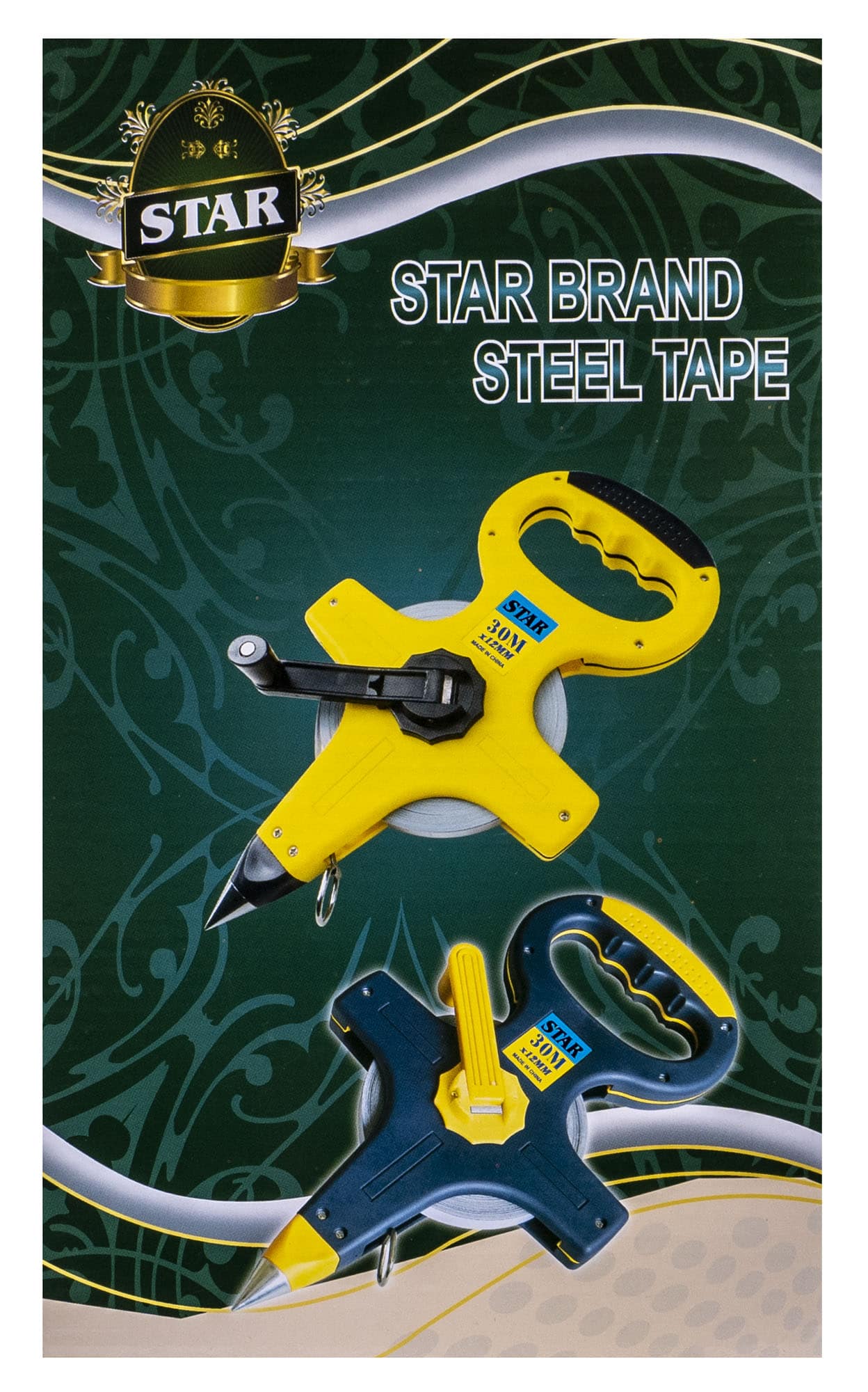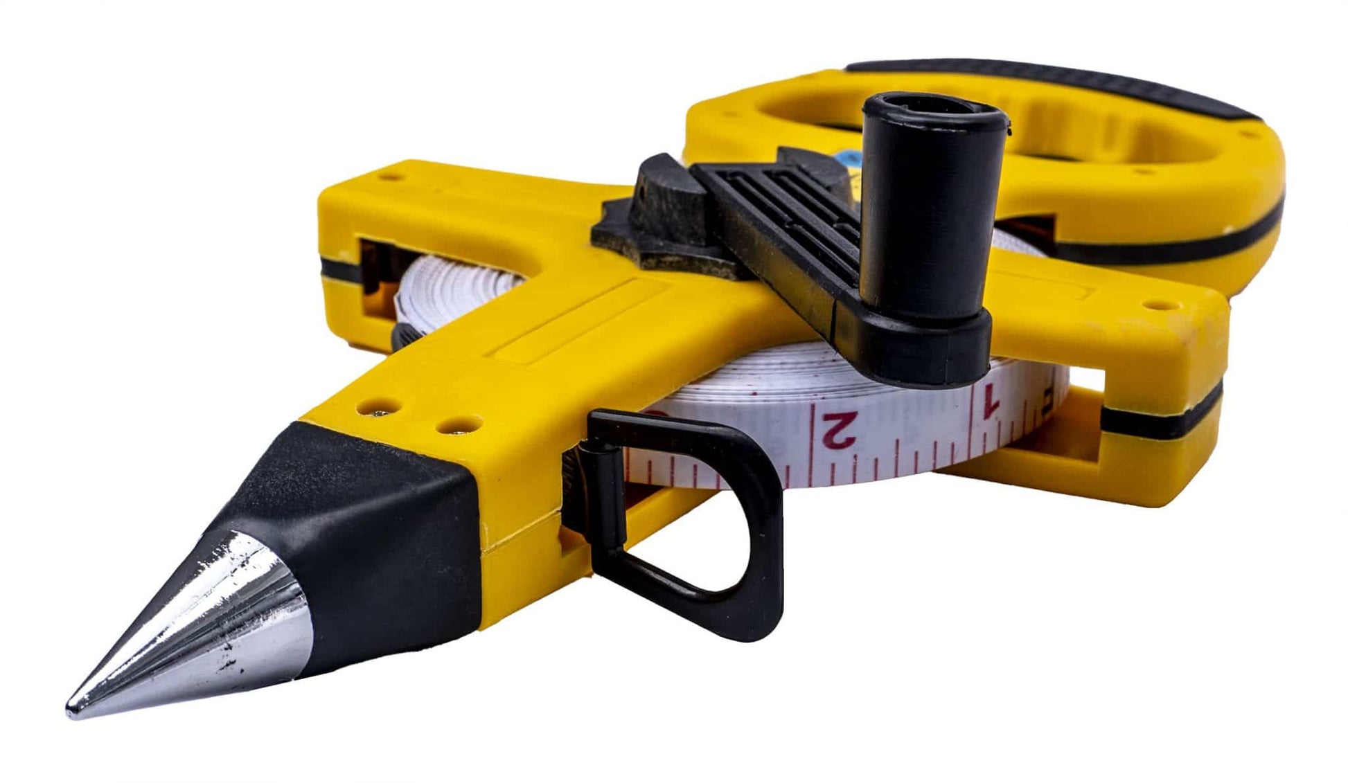 Ruleta este prevazuta cu mecanism de rulare a benzii actionat cu manivela, varf de fixare pe teren, carlig la cap pentru fixarea capatului benzii