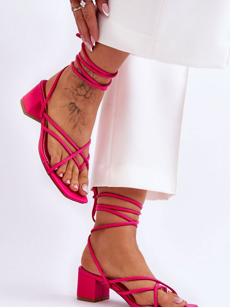 Sandale cu şiret Step in style, Model 180119, Roz - material imitație de piele Footbed imitație de piele Înălţimea tocului 5 cm
