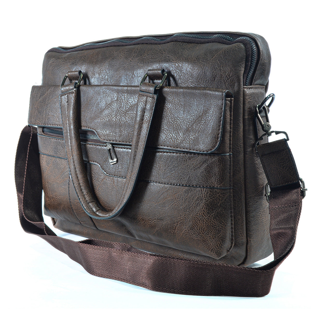 Servieta barbati, piele ecologica, Naimeed D5449, Companion, Maro inchis, 39x7x30cm