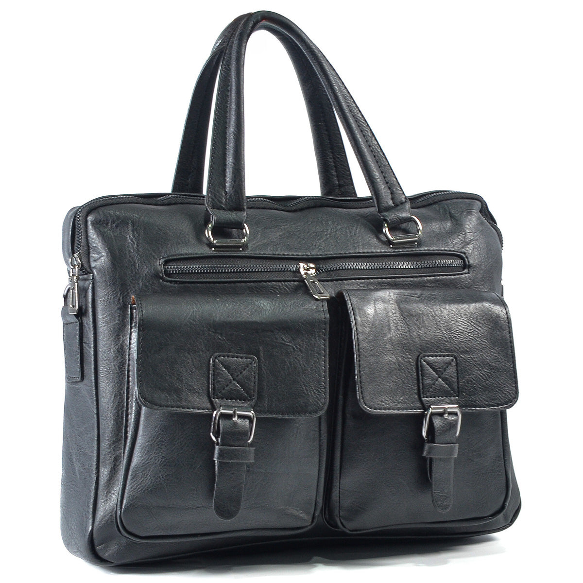 Servieta barbati, piele ecologica, Naimeed D5453, Companion, Negru, 39x7x30cm