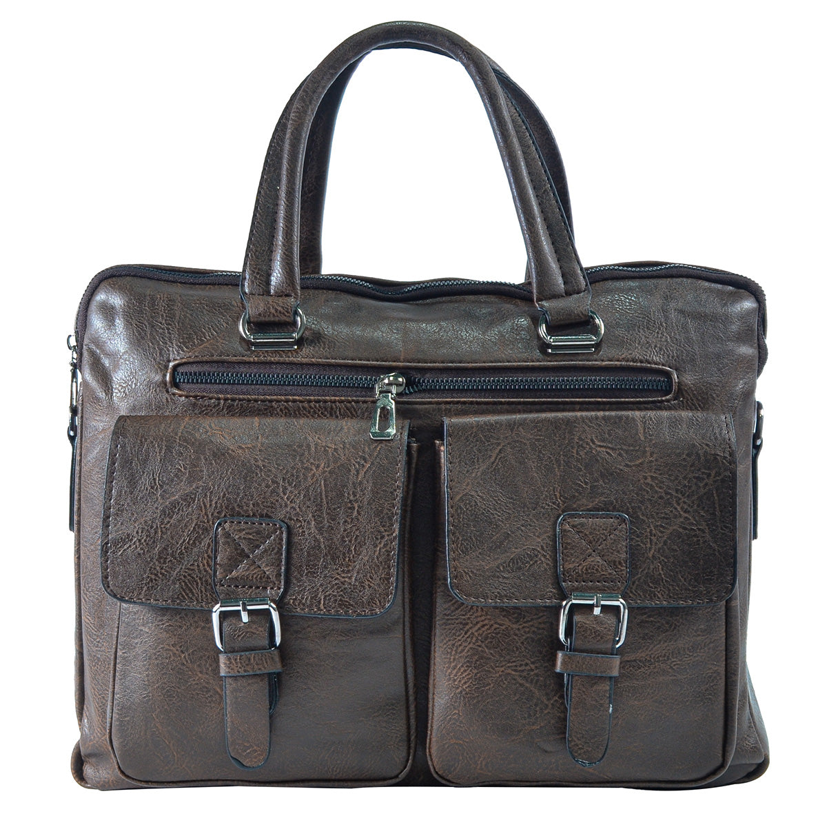 Servieta barbati, piele ecologica, Naimeed D5454, Companion, Maro inchis, 39x7x30cm