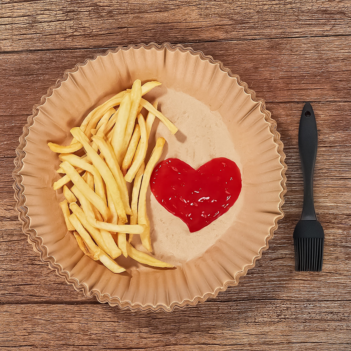 Forma rotunda a hartiei de copt este ideala pentru a se potrivi cu diferitele aparate de gatit, precum friteuza, cuptorul cu microunde si altele.