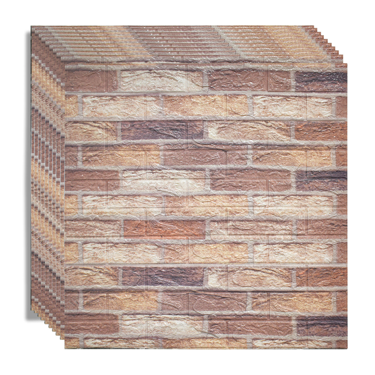 Set 10x Tapet 3D Autoadeziv, rezistent la apa, usor de curatat, 70x77cm, Naimeed D3583, model caramida, Maro/Crem