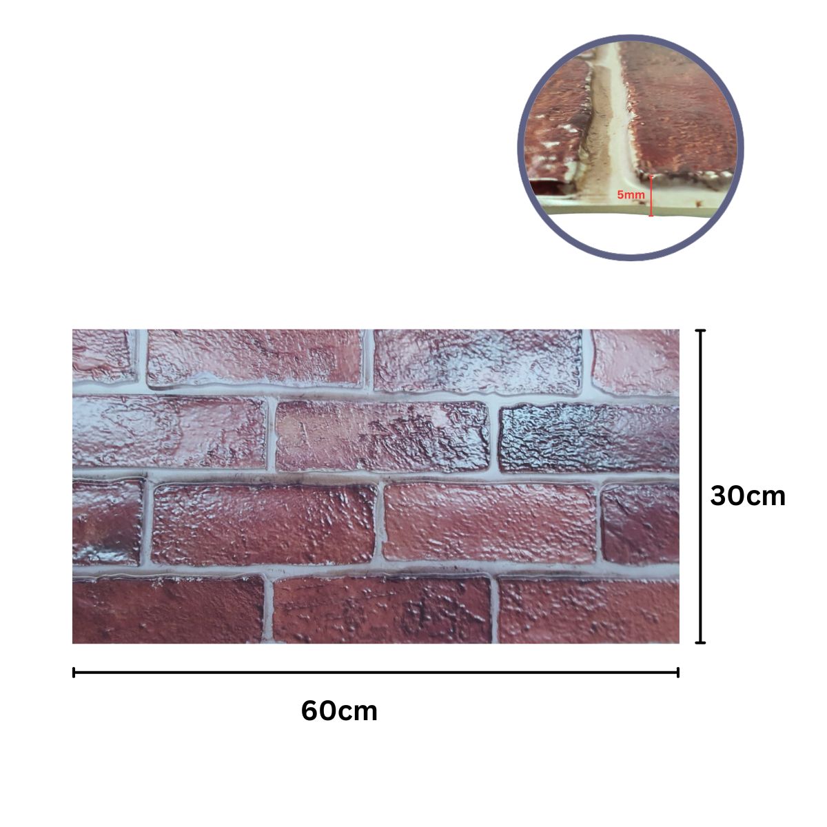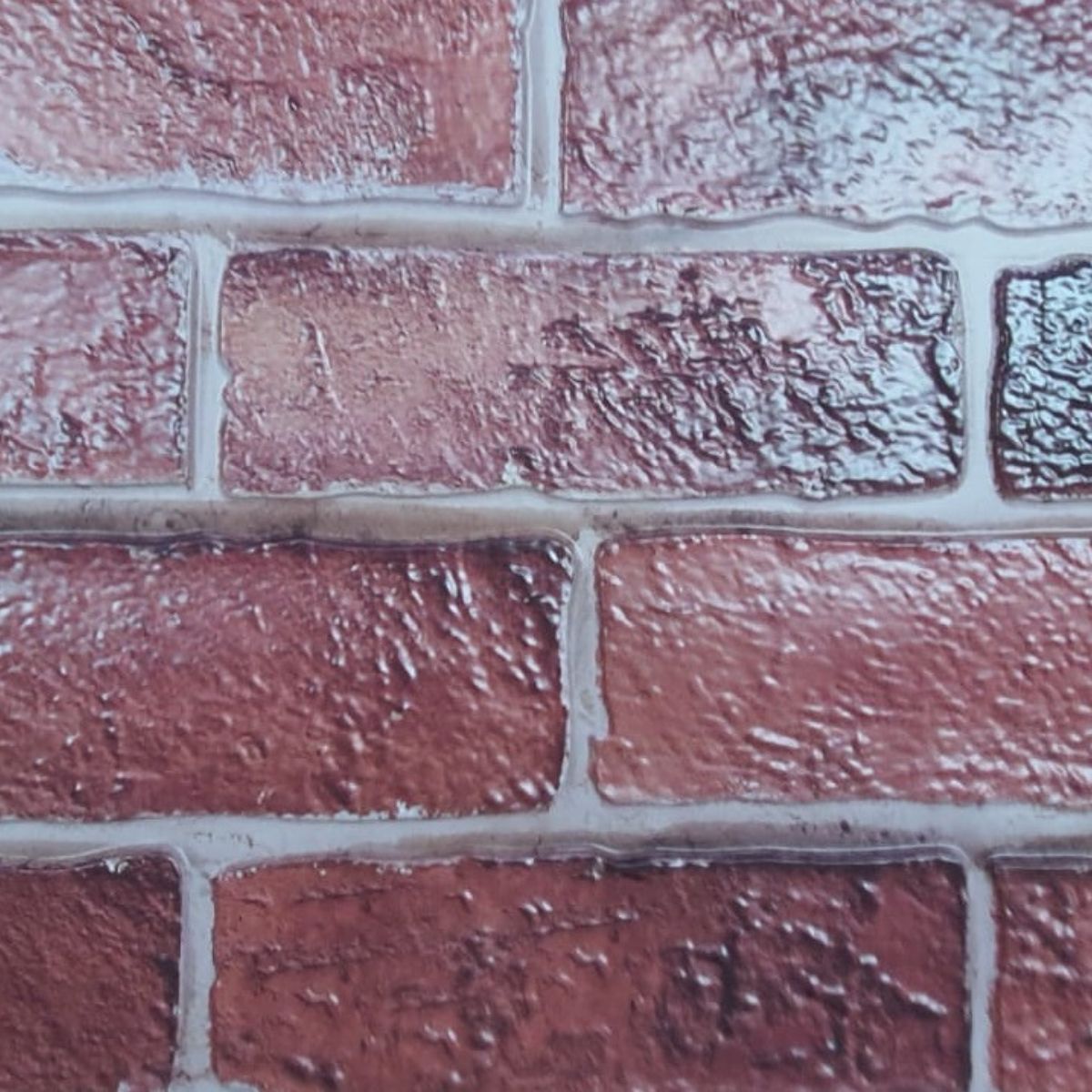 Set 12 panouri decorative, SXP + PVC, autoadezive, imitatie mozaic de caramida cu textura in relief, Naimeed D2949-model-5, 60x30x0.5 cm, Rosu