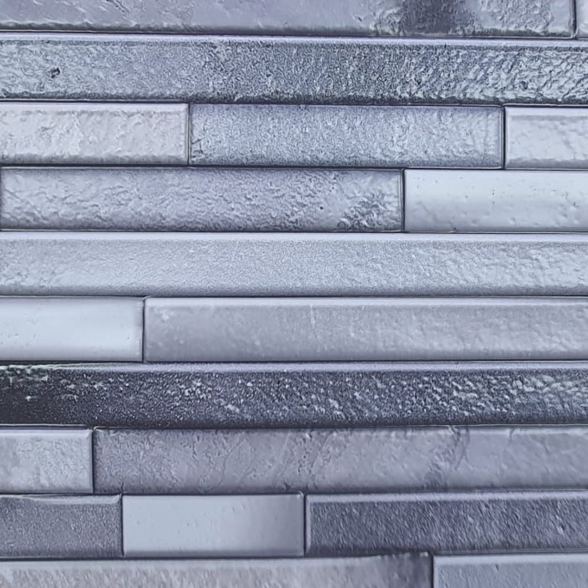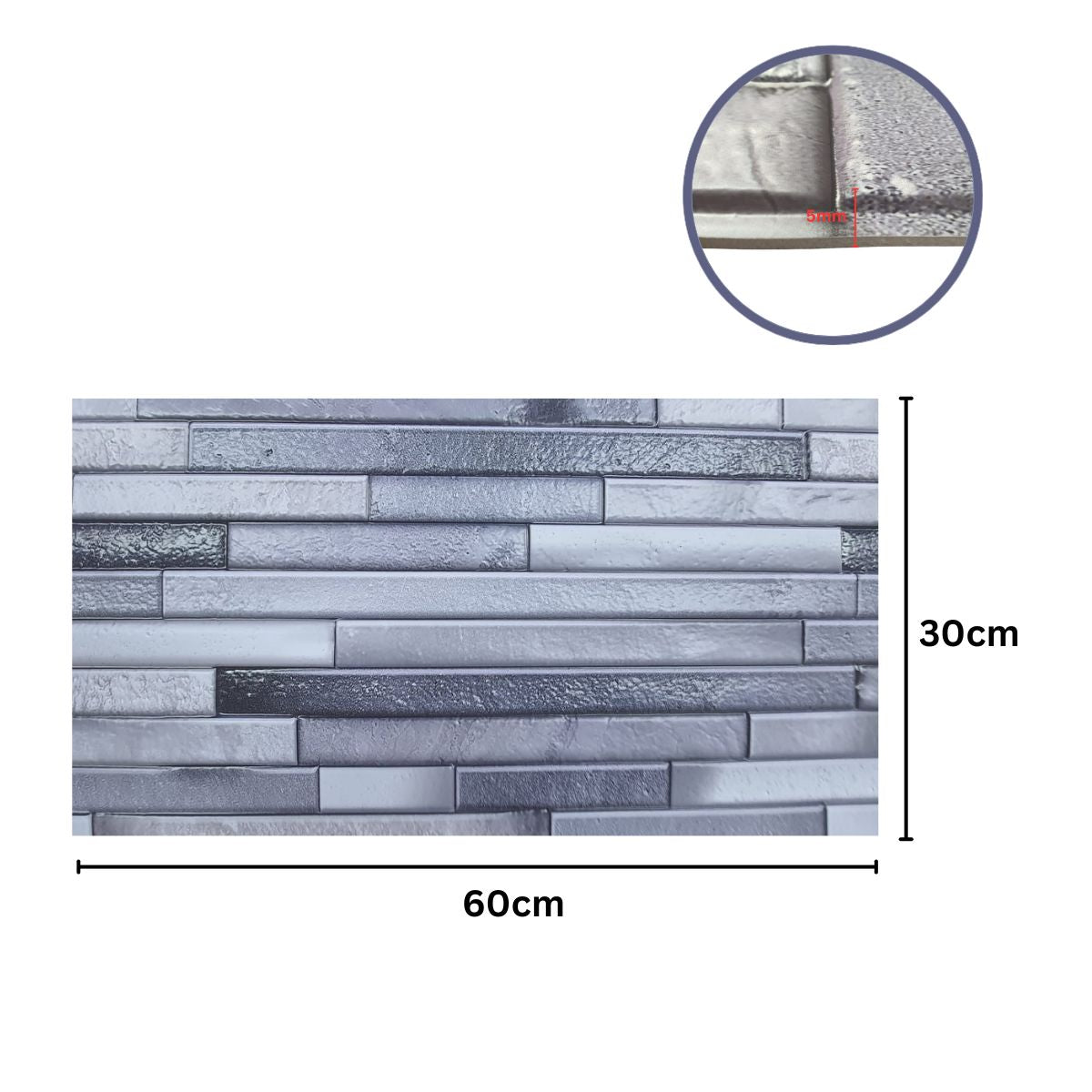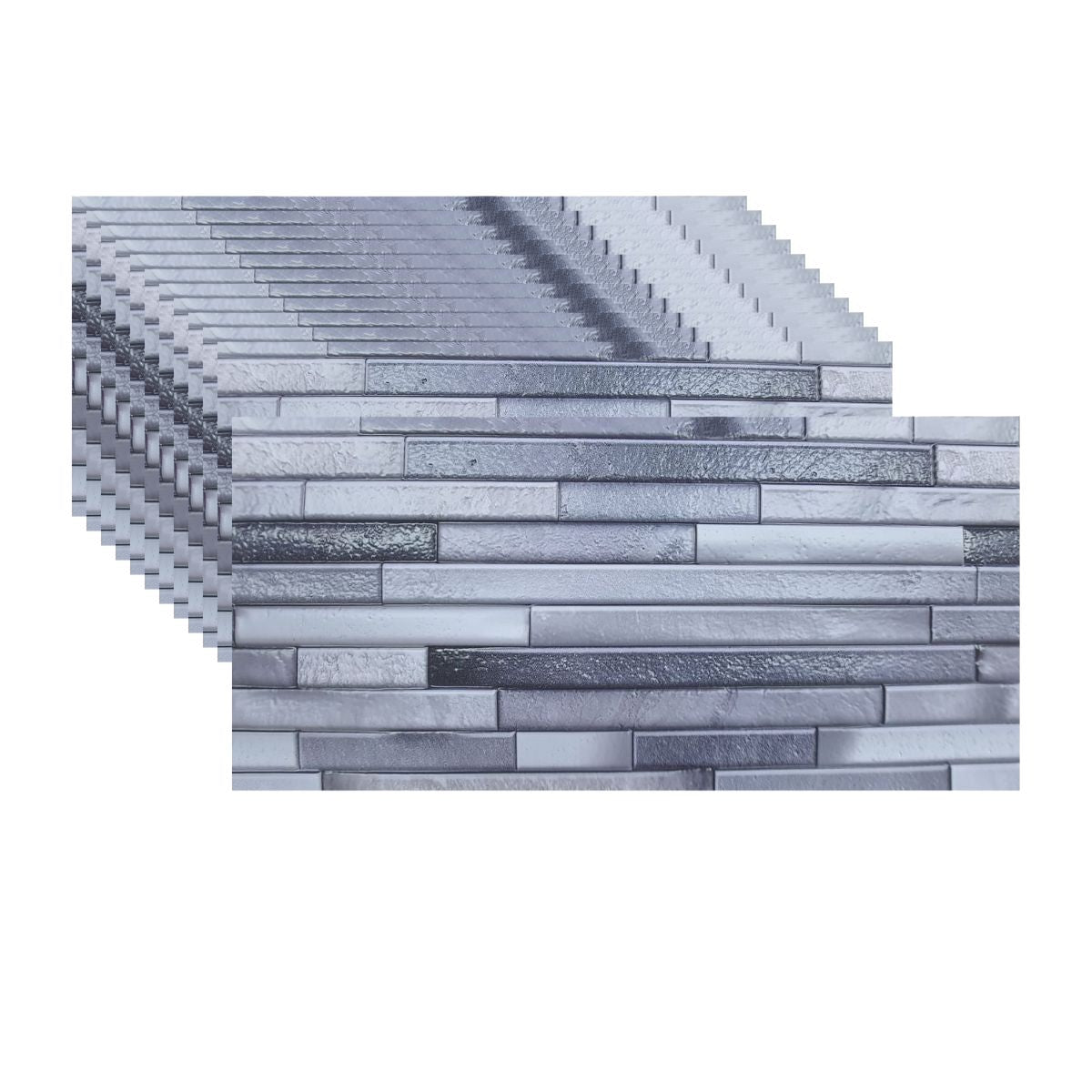 Set 12 panouri decorative, SXP + PVC, autoadezive, imitatie mozaic de piatra cu textura in relief, Naimeed D2949-model-1, 60x30x0.5 cm, Gri