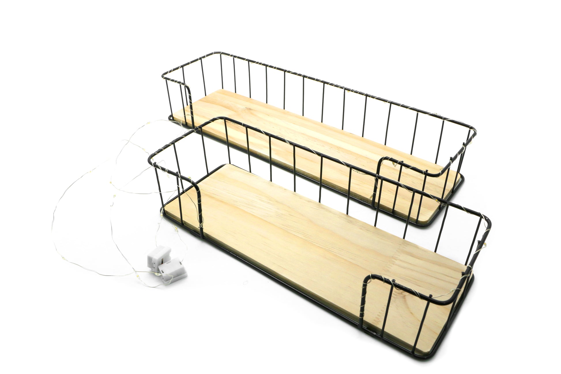 Set 2 Etajere Suspendate, Luminite Led, Negru, Naimeed D61N, 44.5x13x7.5 cm