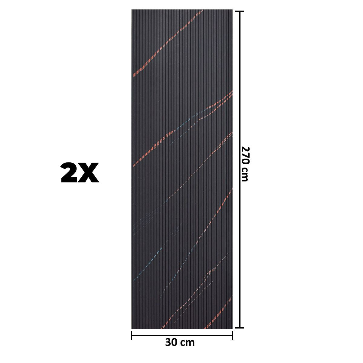 Set 2 panouri decorative, riflaj, polimer rigid, Naimeed D5464, 270x30x0.5cm, Negru