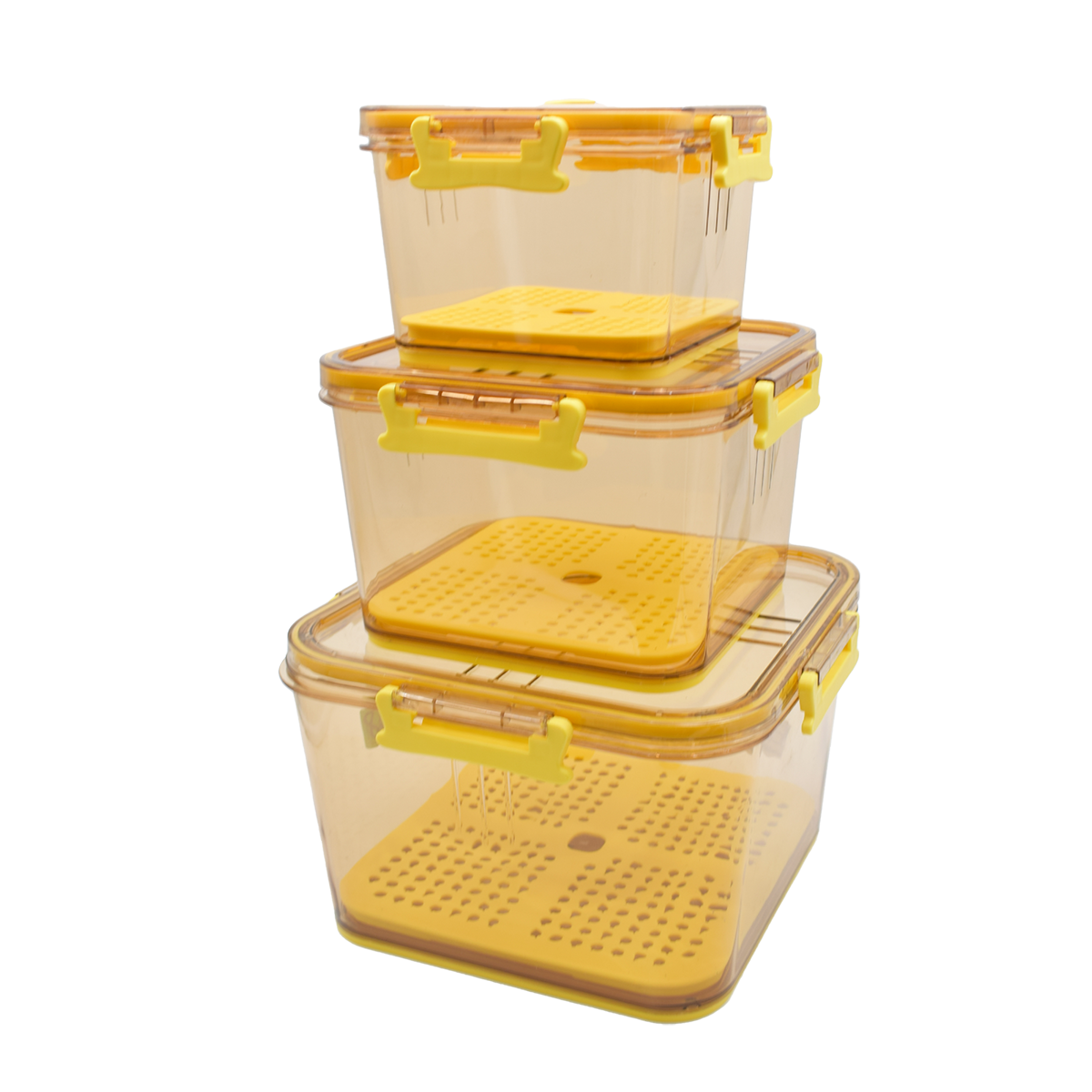 Set 3 caserole, monitorizarea datei, sistem de scurgere, Naimeed D5308, Galben