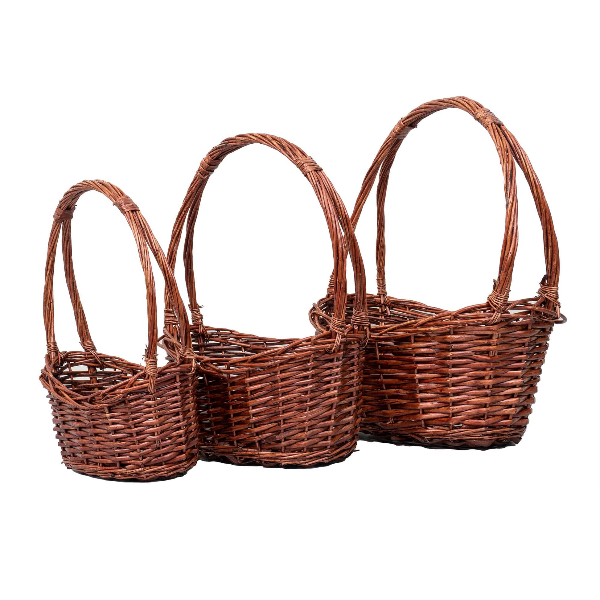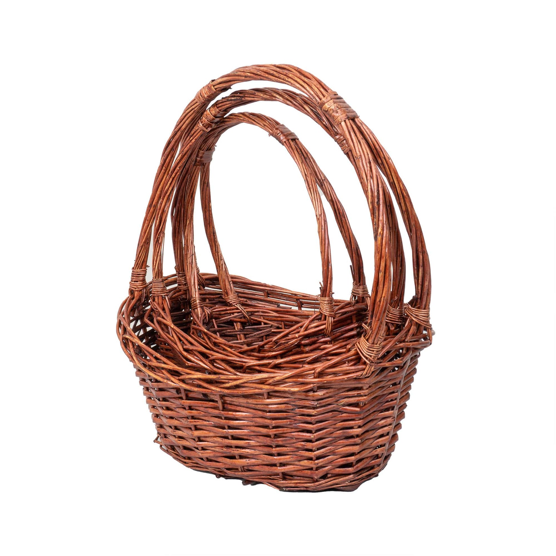 Set 3 cosuri de rachita ovale, maro lucios / ZTS 8001