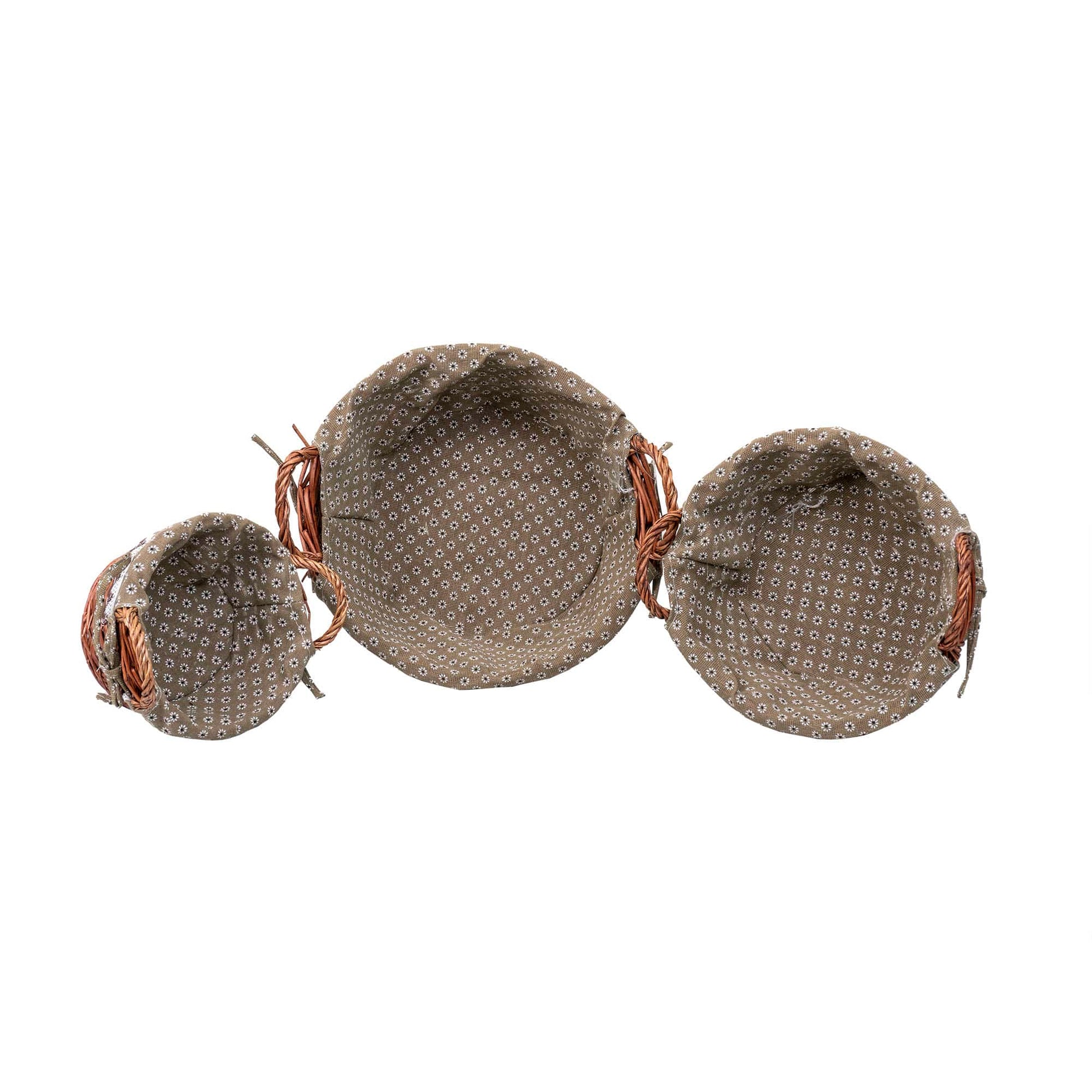 Set 3 cosuri de rachita rotunde, cu manere, maro inchis plus material textil.