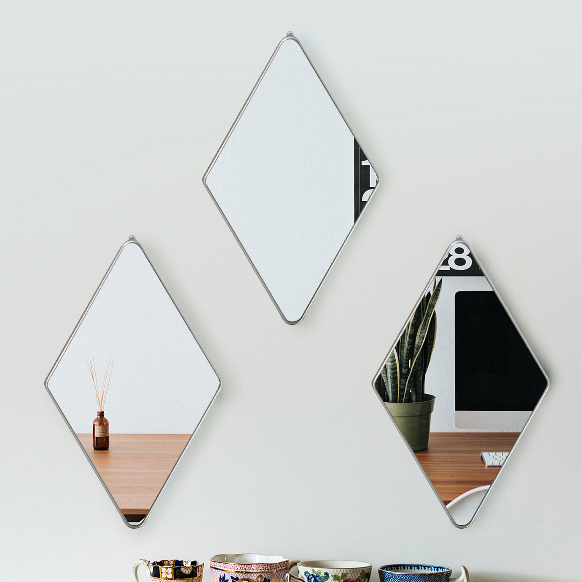 Set 3 Oglinzi Decorative, Naimeed D4607S, Argintiu, 17x1x28 cm