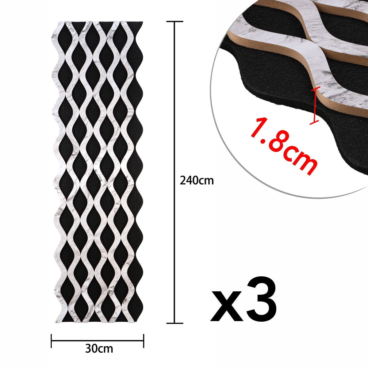 Set 3 Panouri riflaj acustic decorativ, MDF si pasla, Naimeed D6238, 240x30x1.8cm, Alb