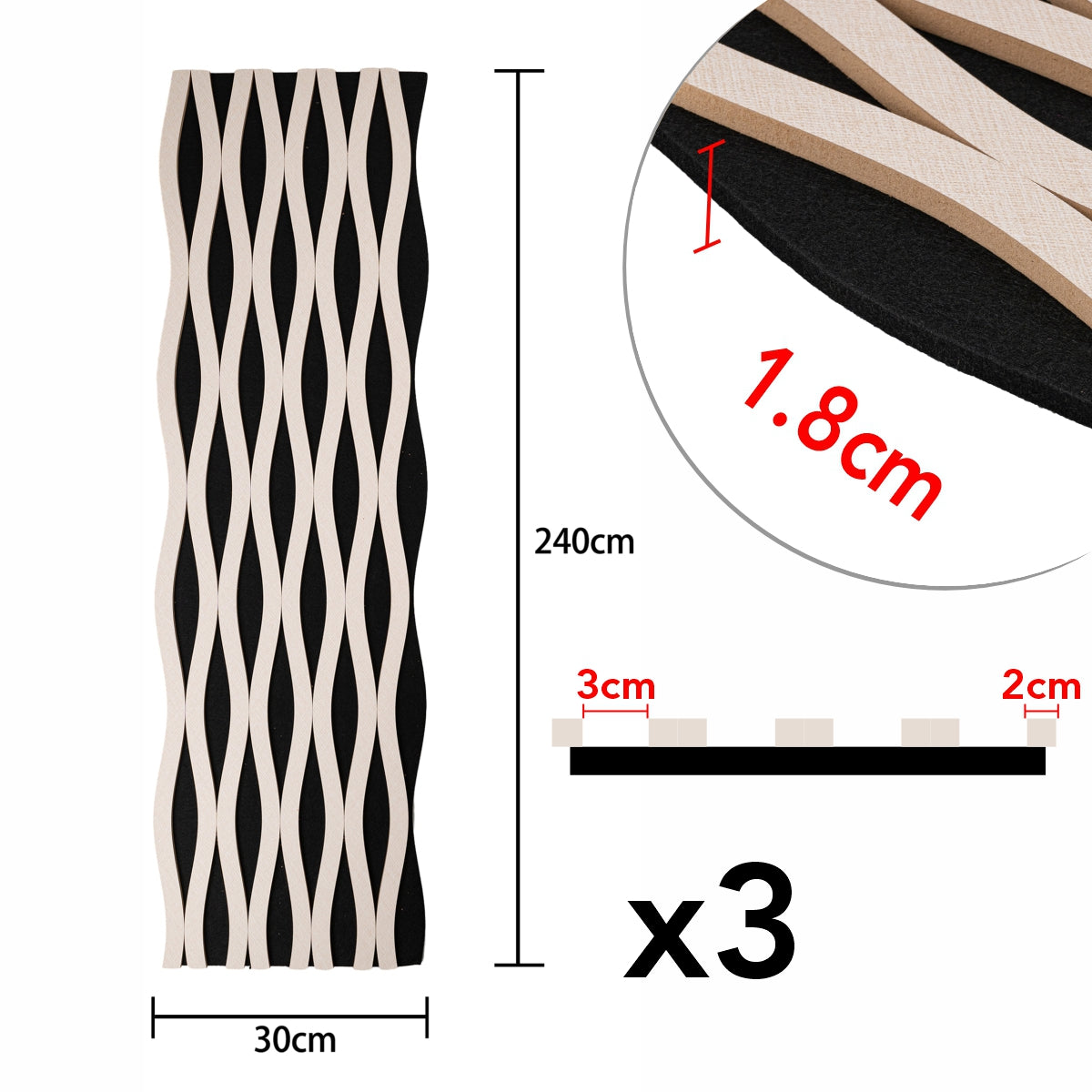 Set 3 panouri riflaj acustic decorativ din mdf si pasla, suprafata acoperita 2.16 mp (3 x 0.72mp)