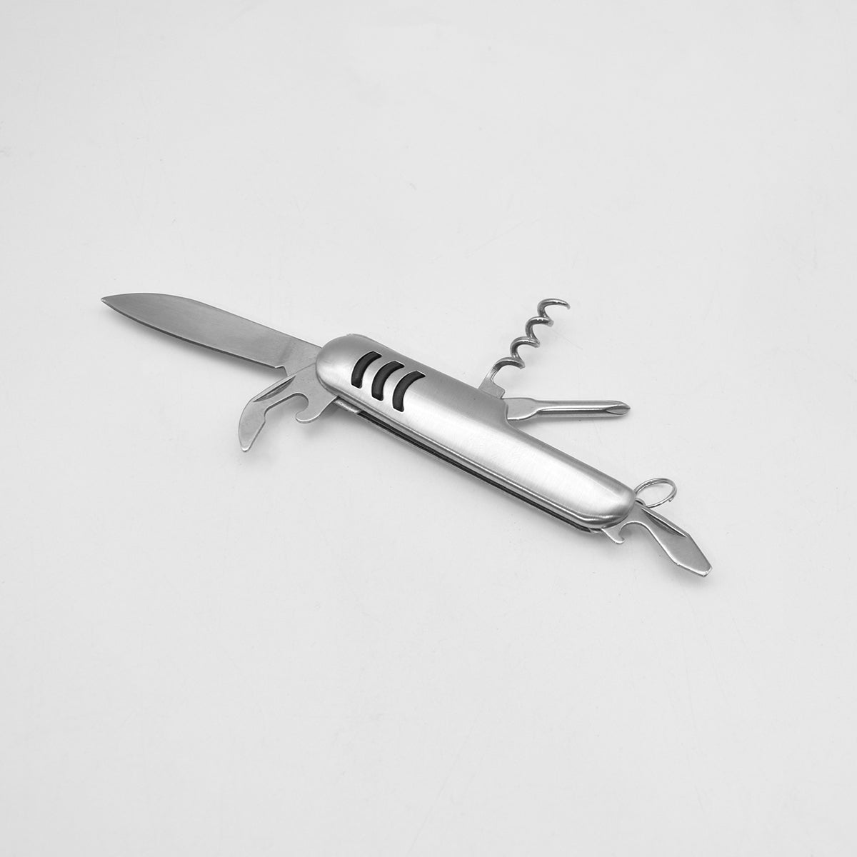 Unealta multifunctionala compacta cuprinde cutit, surubelnita stea, tirbuson si