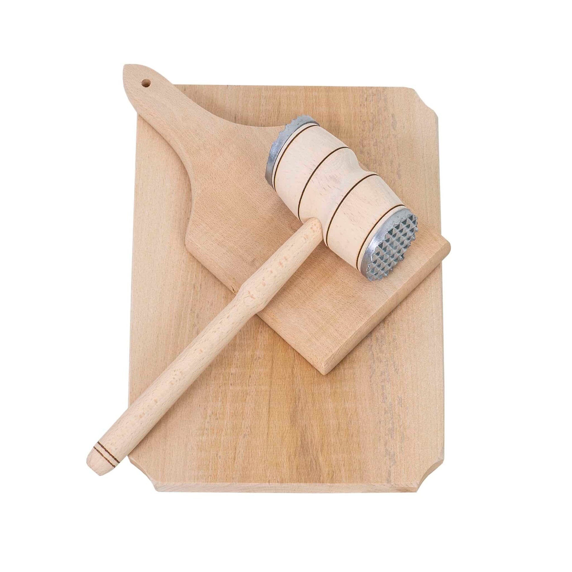 Set 3 piese, un ciocan si doua tocatoare, din lemn de fag, grosime 20mm.