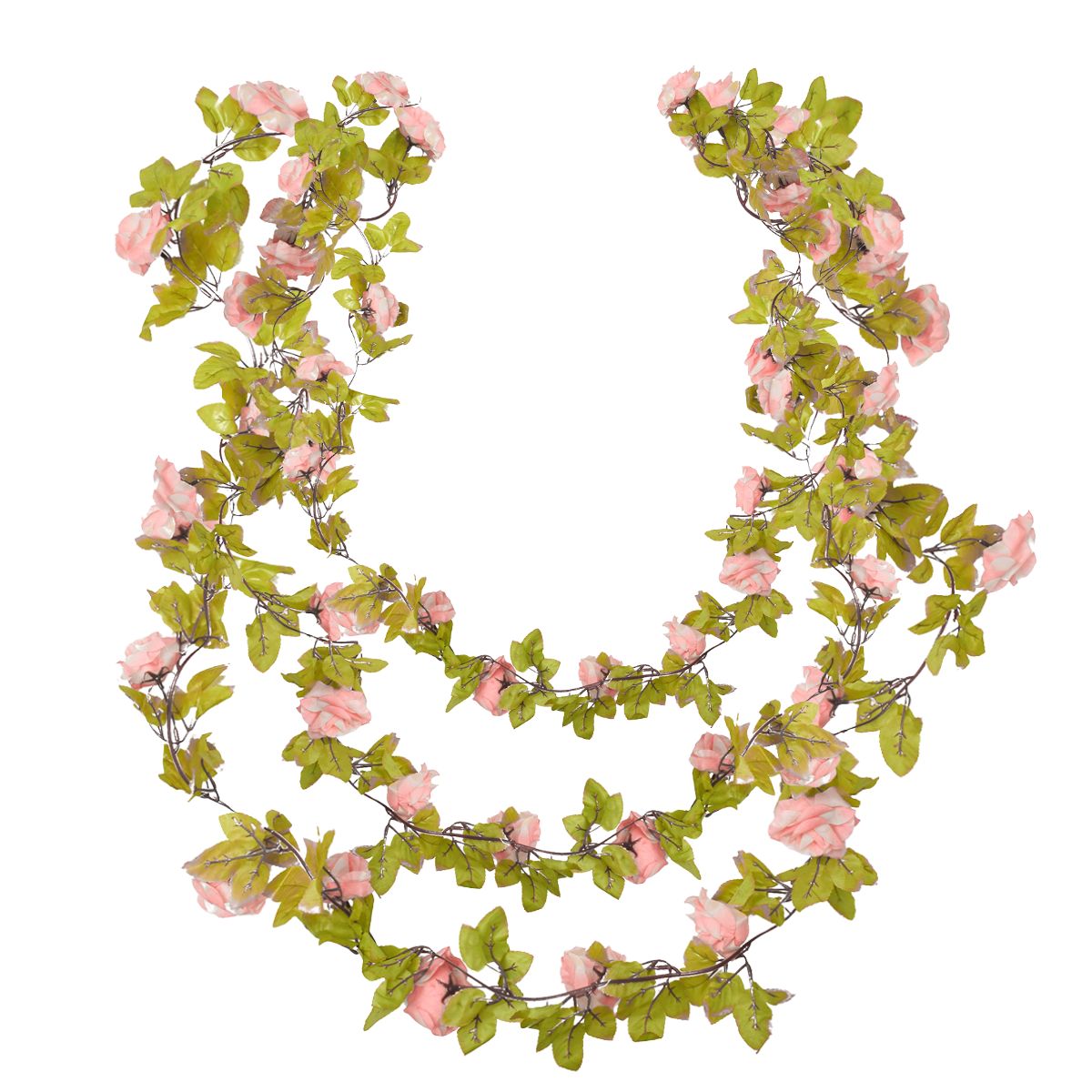 Set 3 plante artificiale, tip ghirlanda, Naimeed D5008, Roz, 2m