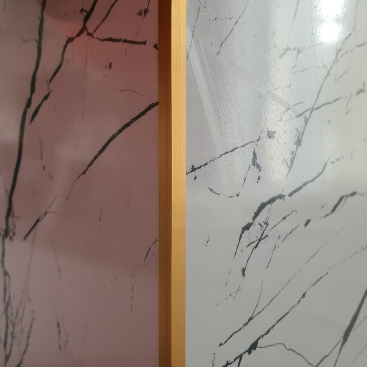 Set 3 profile de colt exterior, ascutit, pentru imbinarea panourilor cristal carbon si carbune de bambus, Naimeed D6332, aluminiu, 300x0.5cm, Auriu