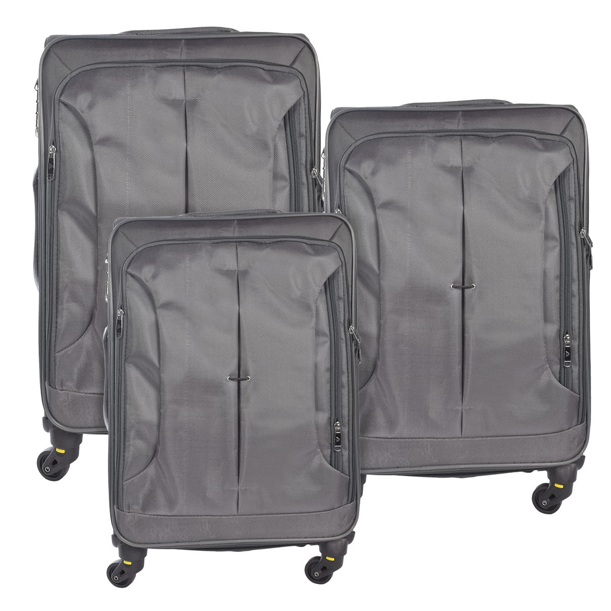 Set 3 trolere voiaj, Naimeed D5589, 4 roti duble 360 grade, material impermeabil, inchidere cifru, Gri
