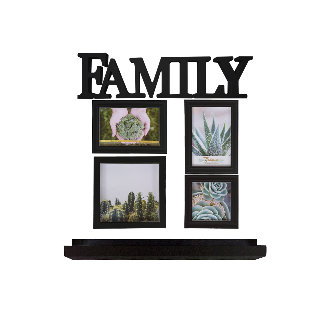 Set 4 rame foto, Naimeed D4599N, 1 polita si 1 ornament, Negru