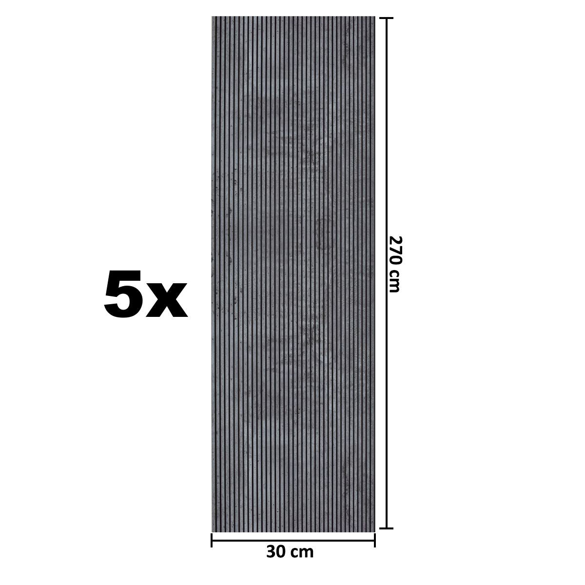 Set 5 panouri decorative, riflaj, polimer rigid, Naimeed D5466, 270x30x0.5cm, Gri