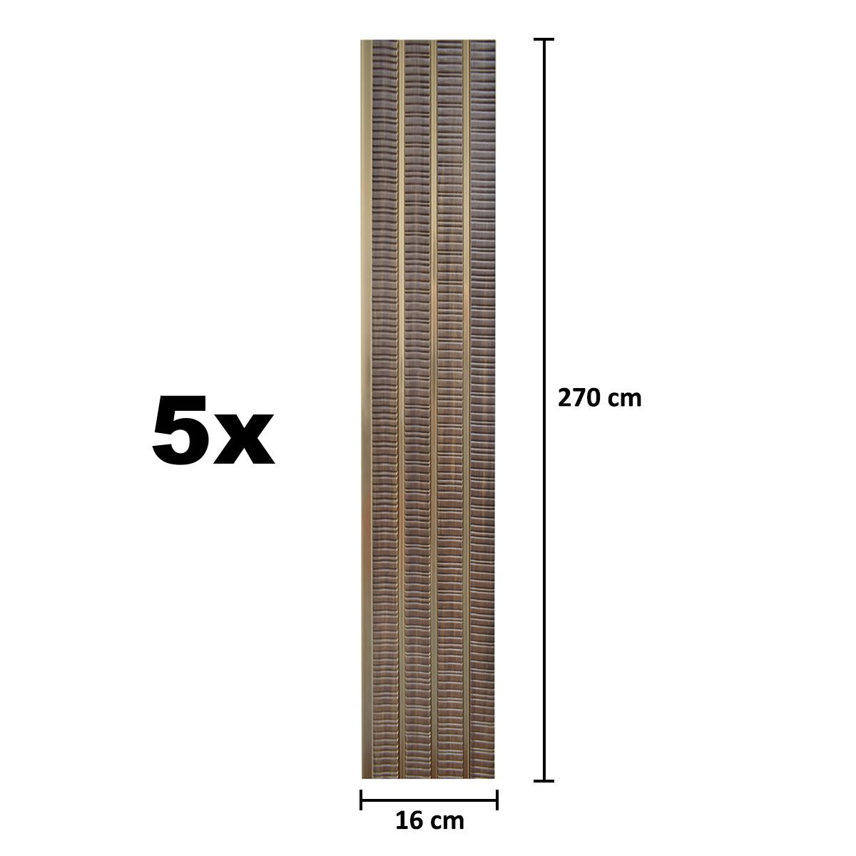 Set 5 panouri decorative, riflaj, polimer rigid, Naimeed D5473, 270x16x1cm, Maro/Auriu