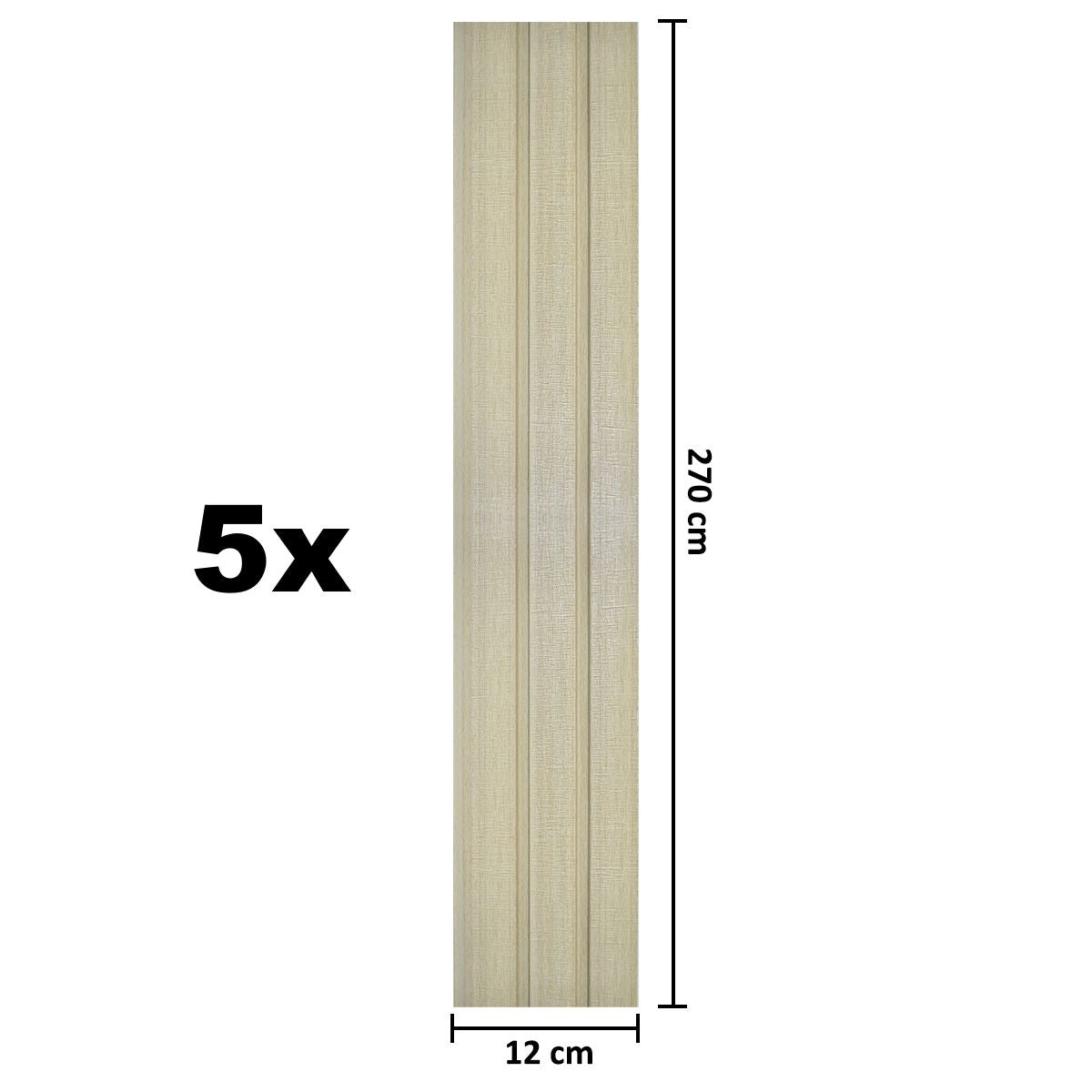 Set 5 panouri decorative, riflaj, polimer rigid, Naimeed D5482, 270x12x1cm, Crem deschis