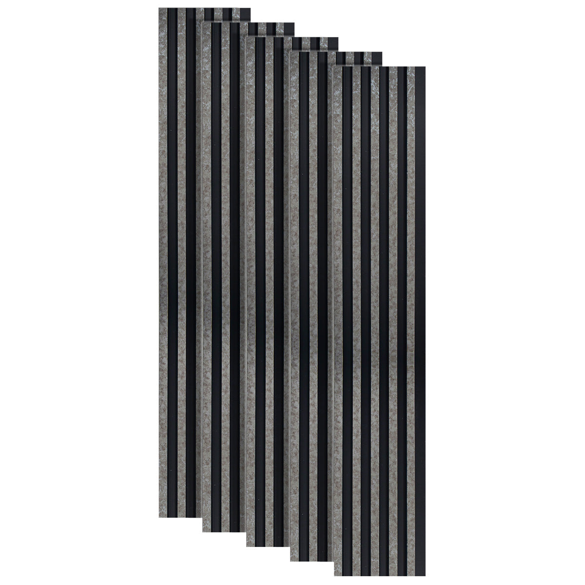 Set 5 panouri decorative, riflaj, polimer rigid, Naimeed D5494, 270x12x1cm, Negru/Gri
