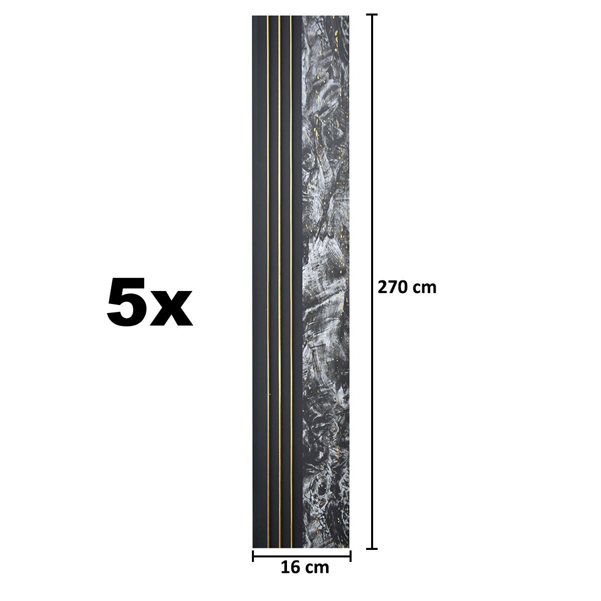 Set 5 panouri decorative, riflaj, polimer rigid, Naimeed D5499, 270x16x1cm, Negru