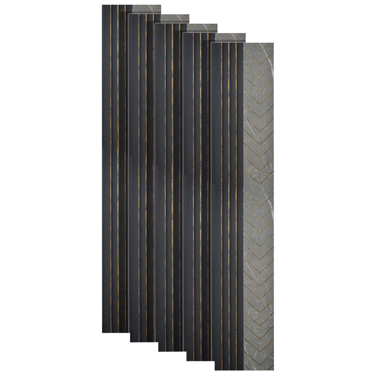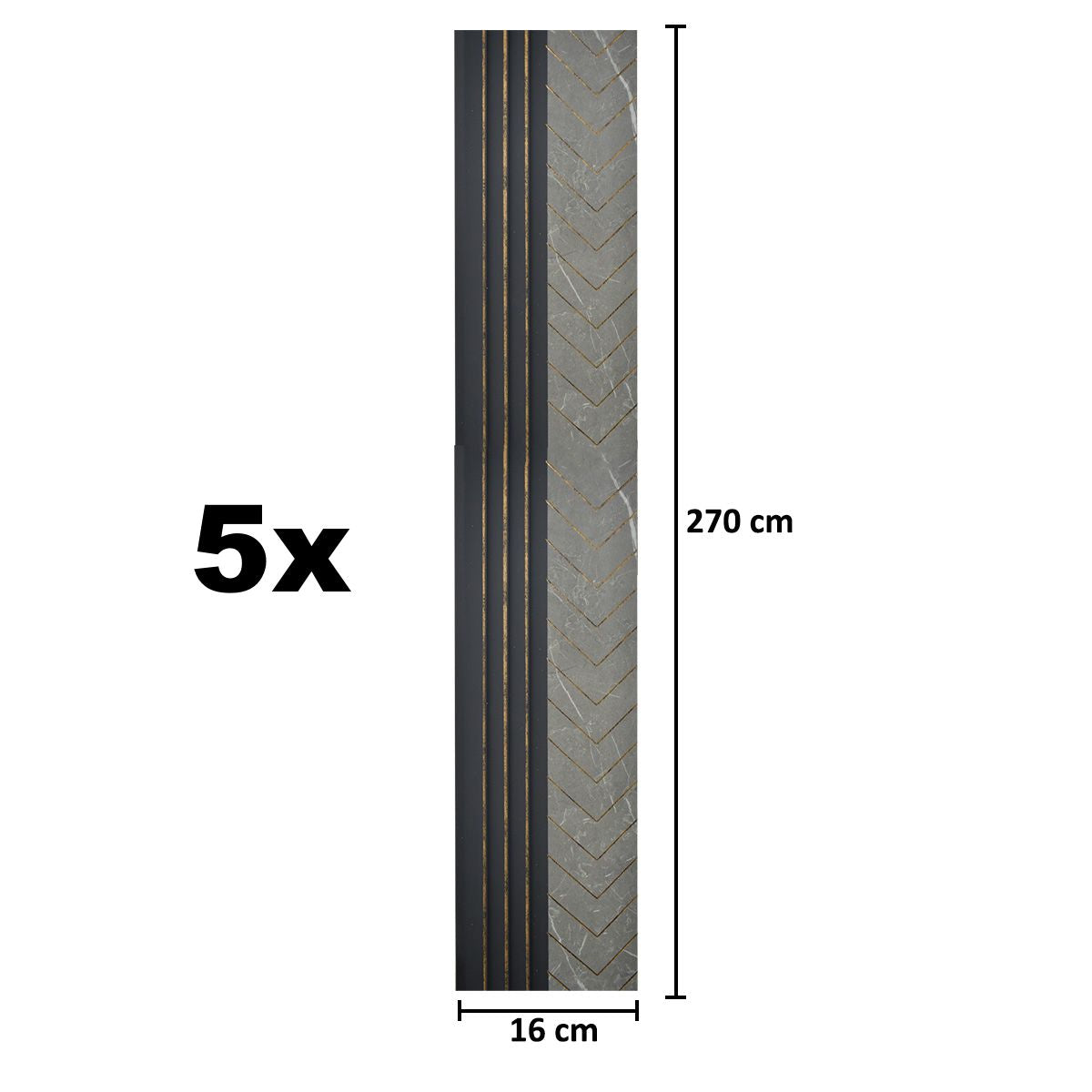 Set 5 panouri decorative, riflaj, polimer rigid, Naimeed D5503, 270x16x1cm, Gri
