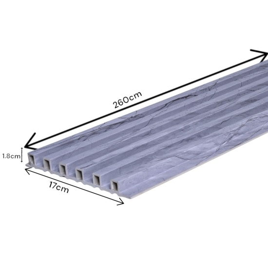 Set 5 panouri decorative, riflaj WPC, cu 6 caneluri, Naimeed D6218, 260x17x1.8cm, Gri marmura