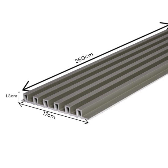 Set 5 panouri decorative, riflaj WPC, cu 6 caneluri, Naimeed D6221, 260x17x1.8cm, Gri deschi