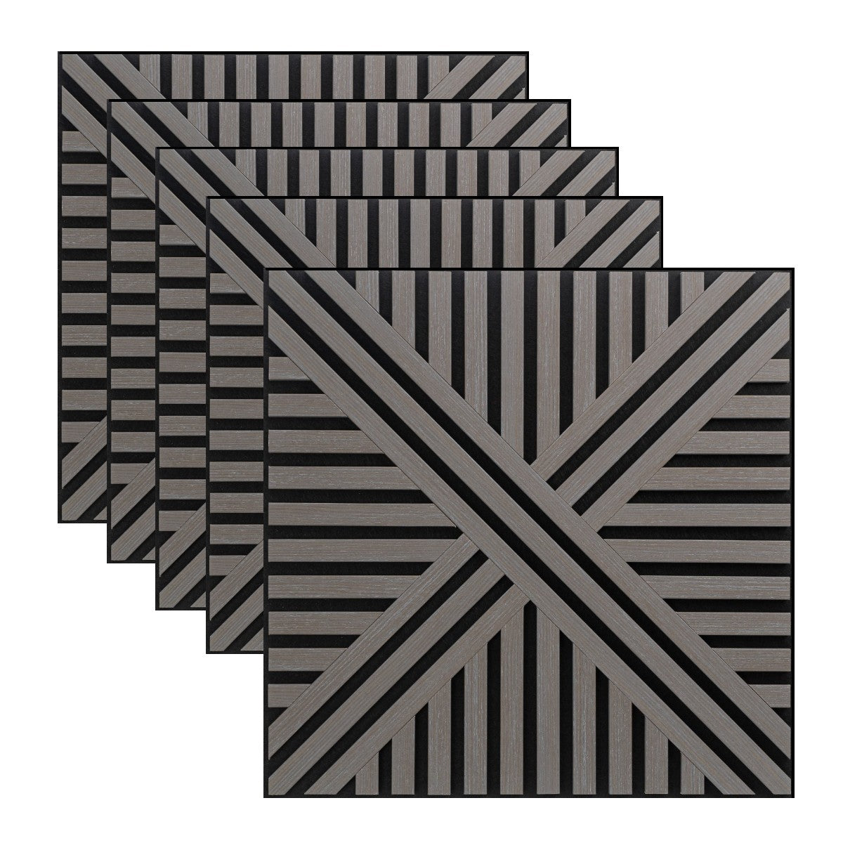 Set 5 Panouri riflaje acustice decorative, MDF si pasla, Naimeed D6765, 60x60x1.8cm, Gri