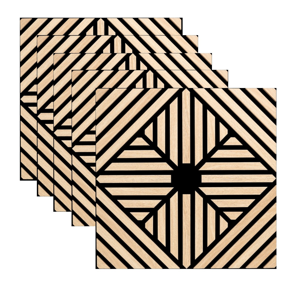 Set 5 Panouri riflaje acustice decorative, MDF si pasla, Naimeed D6768, 60x60x1.8cm, Stejar