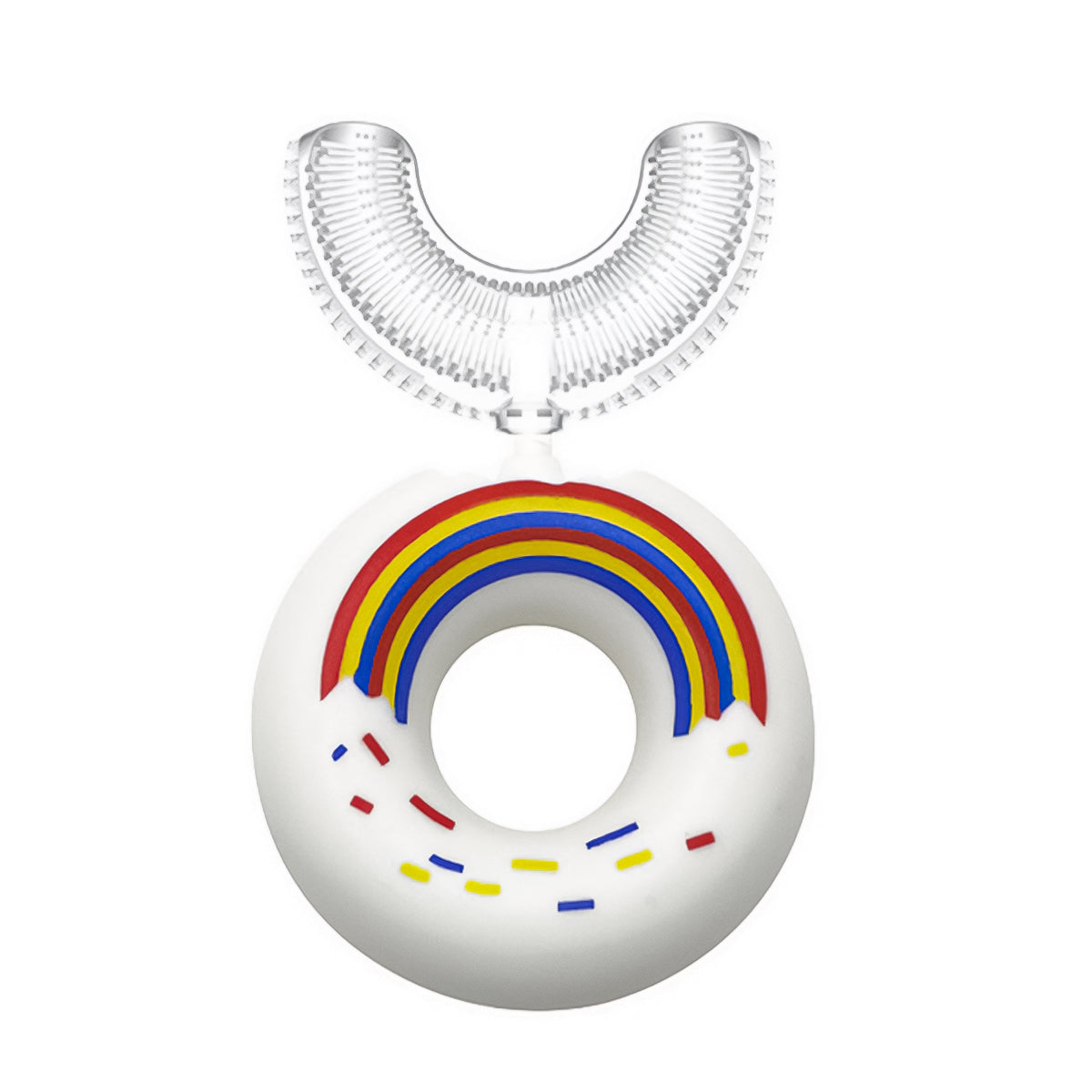 Periuta U-Shape este blanda cu dintisorii copiilor si gingiile sensibile curatand partea de sus si de jos, fata si spate.