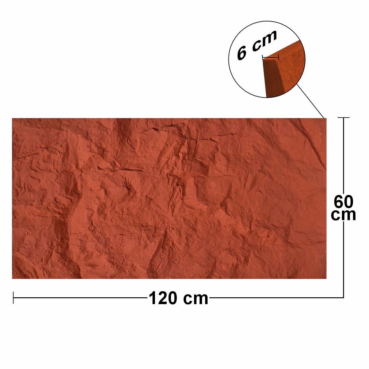 Set 5 x Panou Decorativ 3D, Naimeed D5759, ultrausor, design realist, PU, 120 x 60 x 6 cm, Rosu