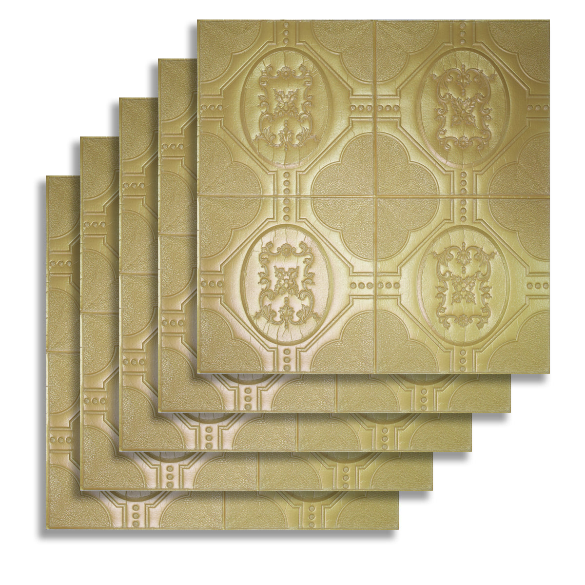 Set 5 x Tapet 3D Autoadeziv, design modern, rezistent la umezeala, usor de curatat, 70x70cm, Naimeed D4748, Auriu