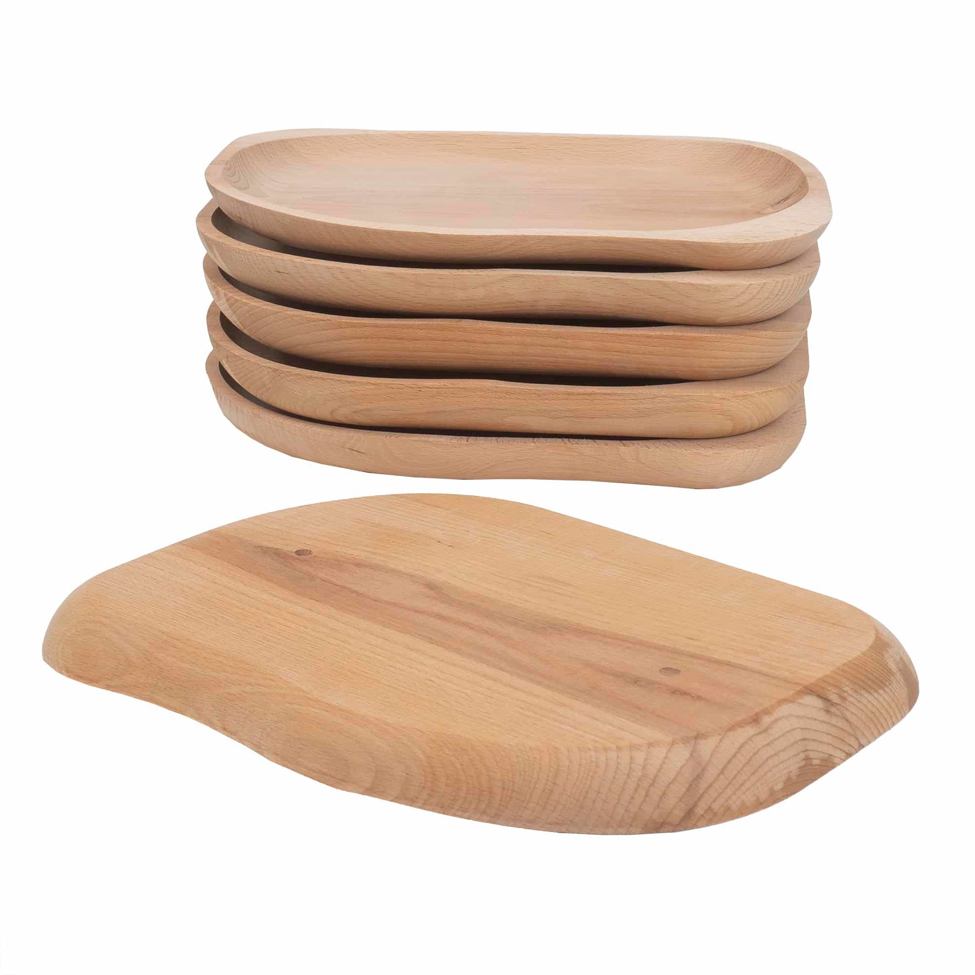Set 6 farfurii din lemn de fag, forma ovala, mare, 30x24cm / EXT 6180