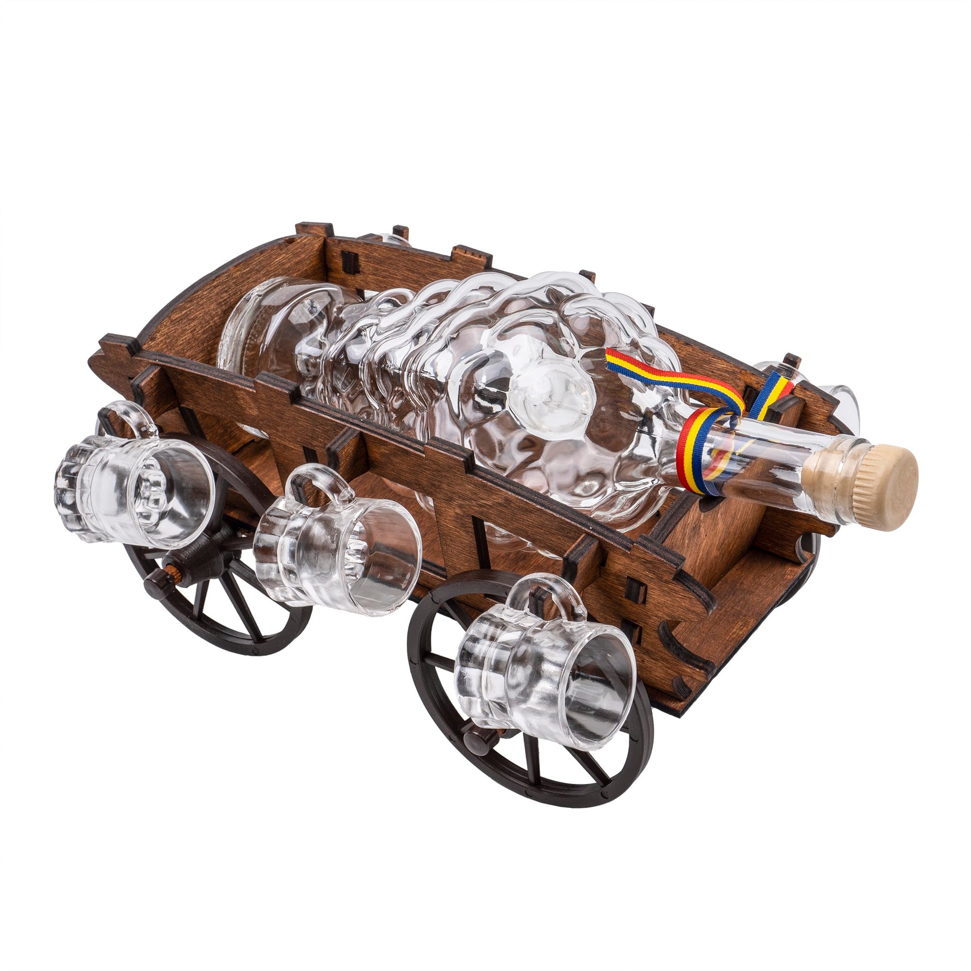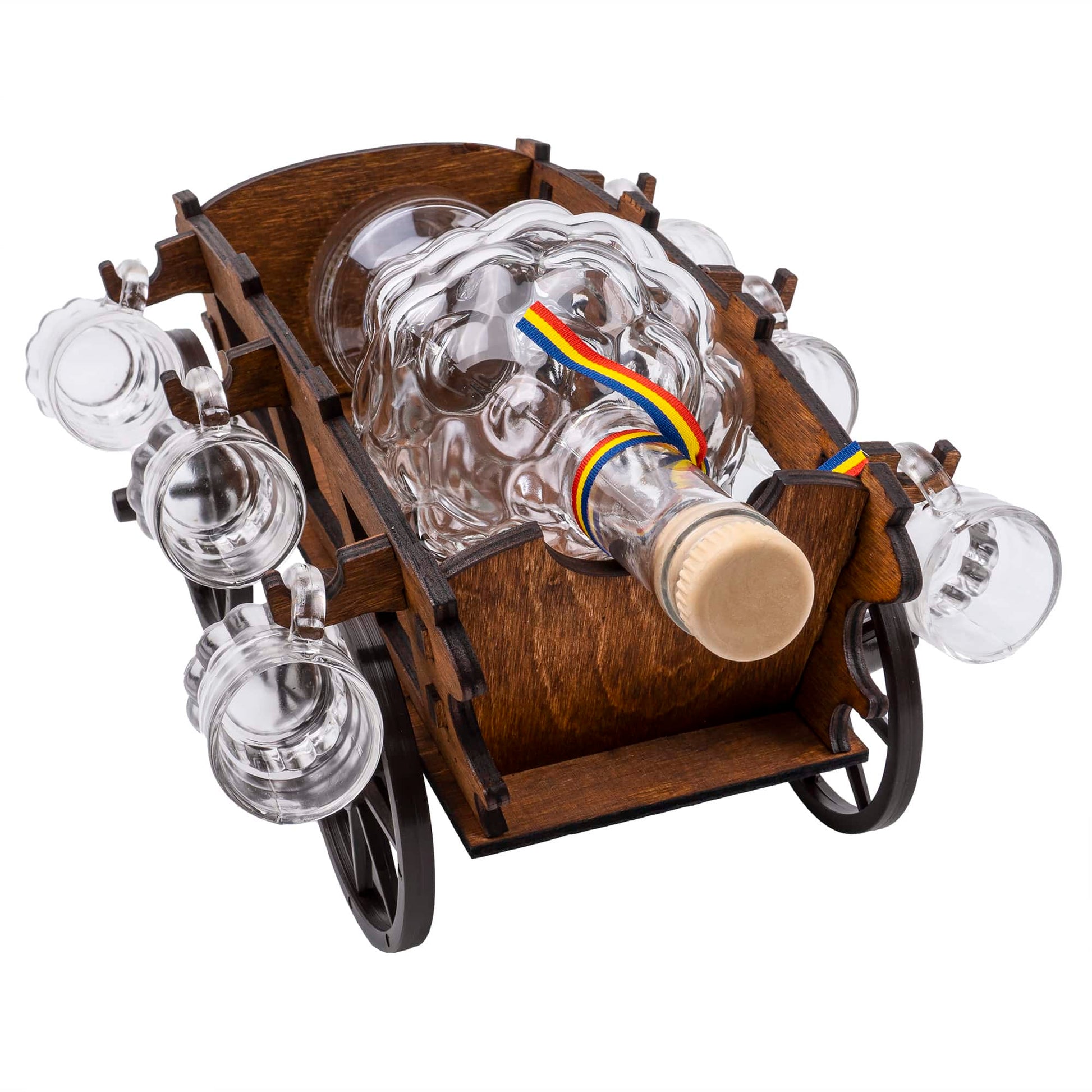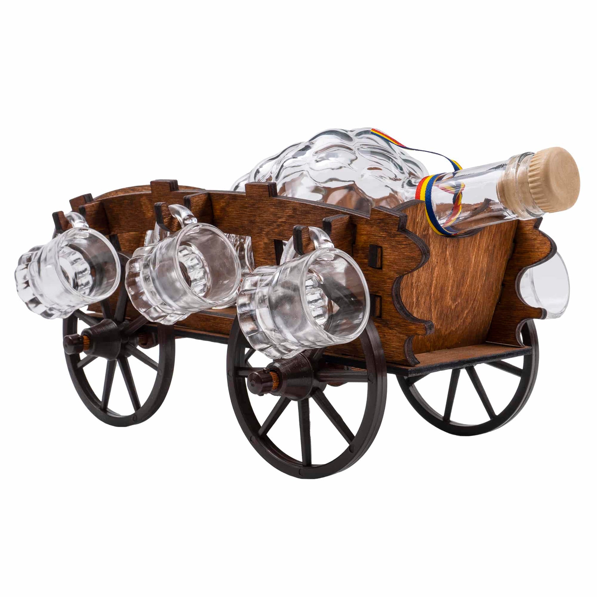 Set 6 pahare Shot cu sticla pe suport, model caruta.