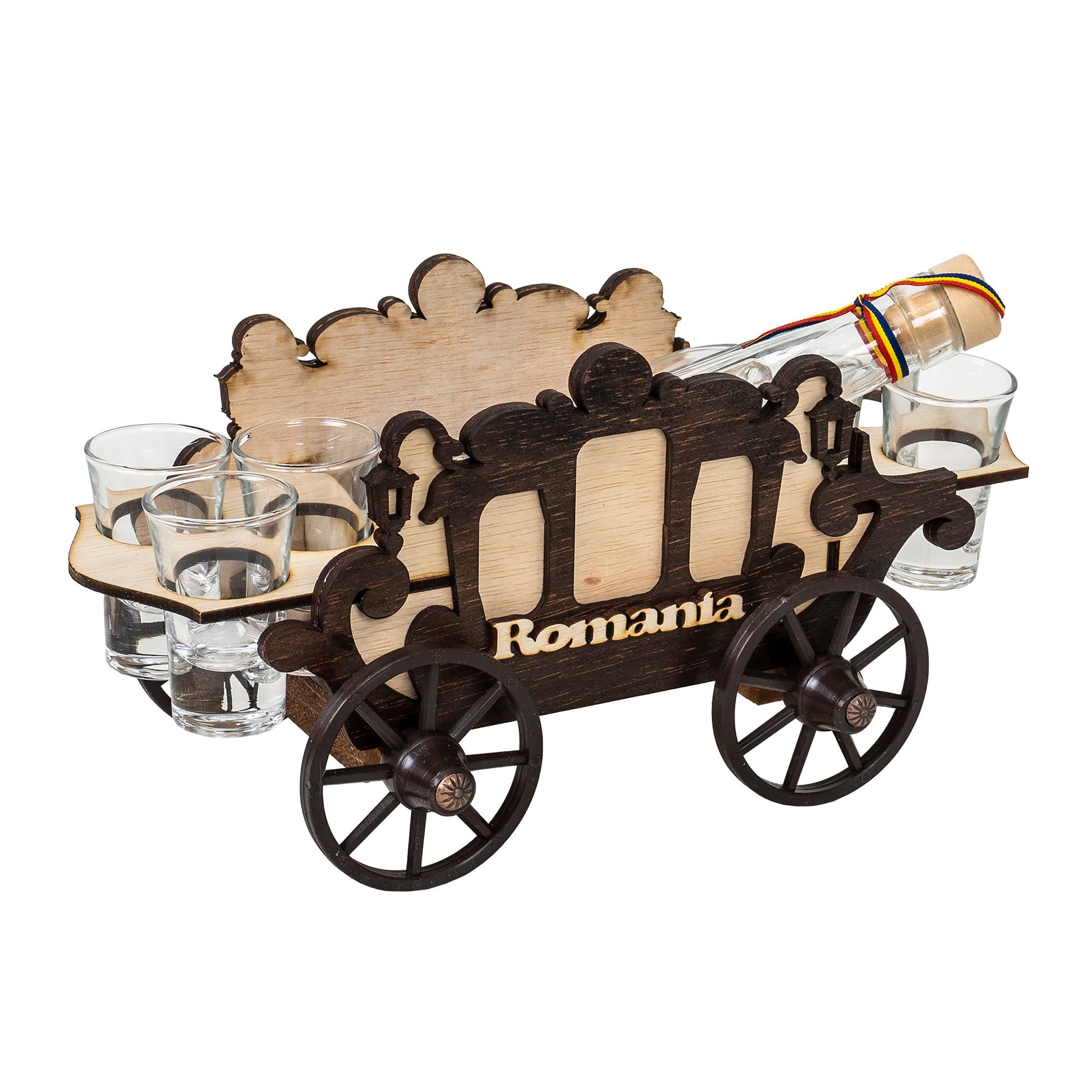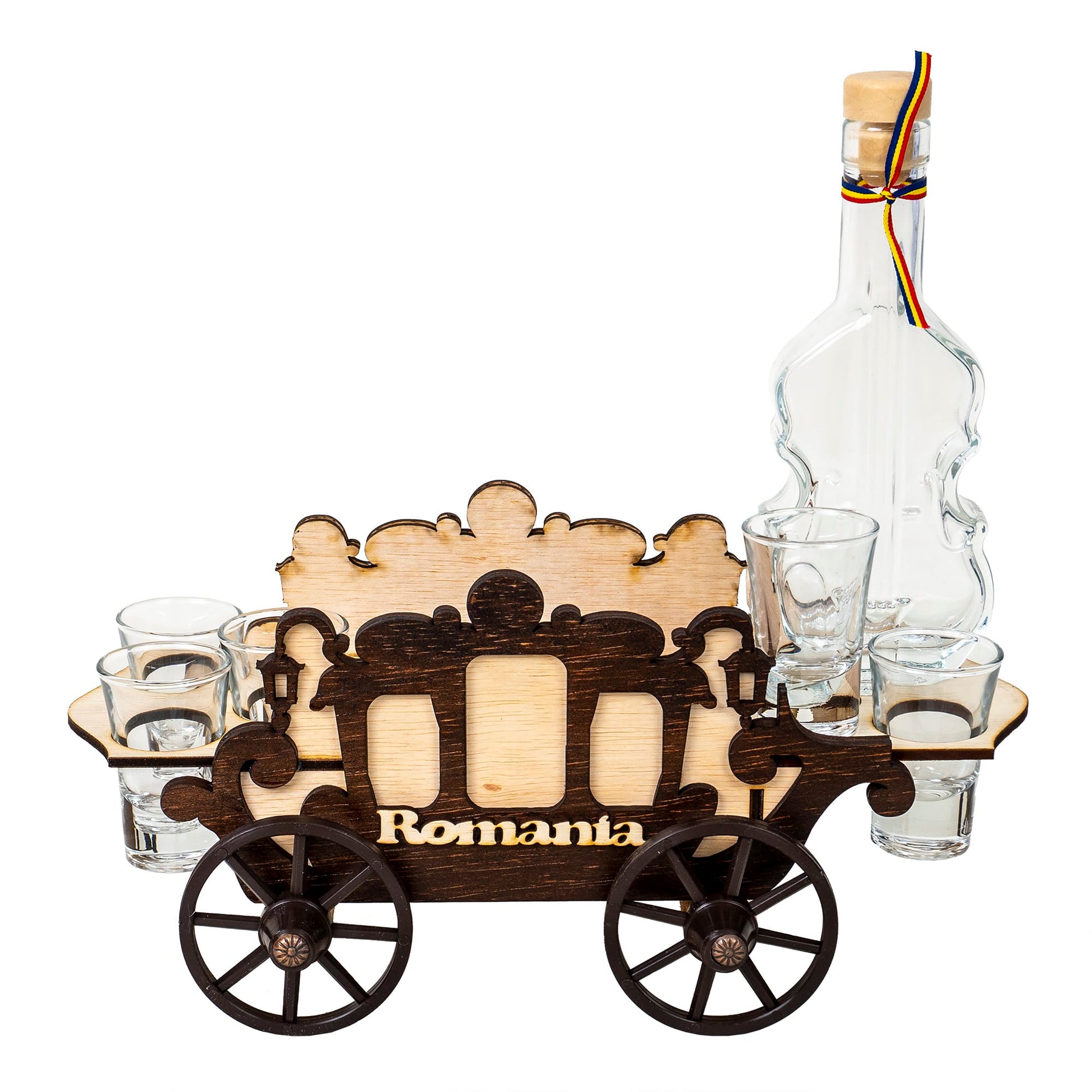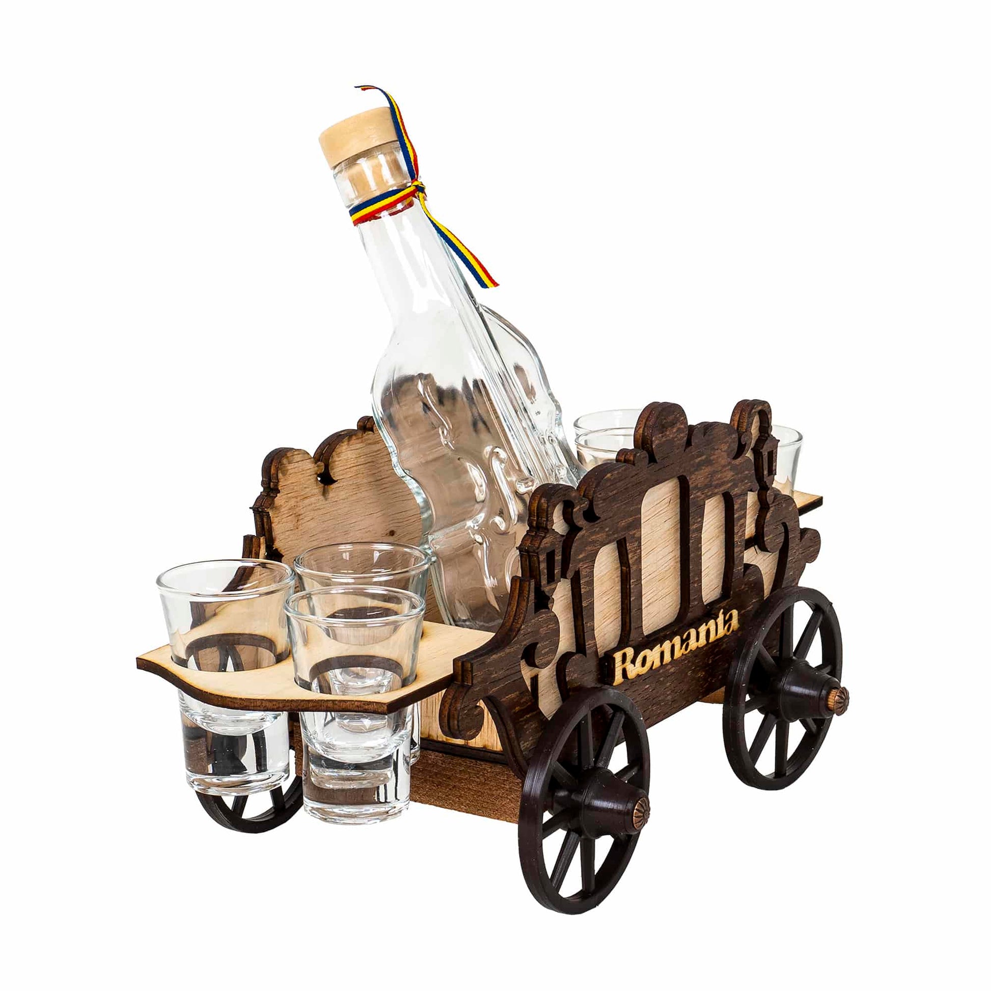 Set 6 pahare Shot cu sticla, pe suport, model caruta.