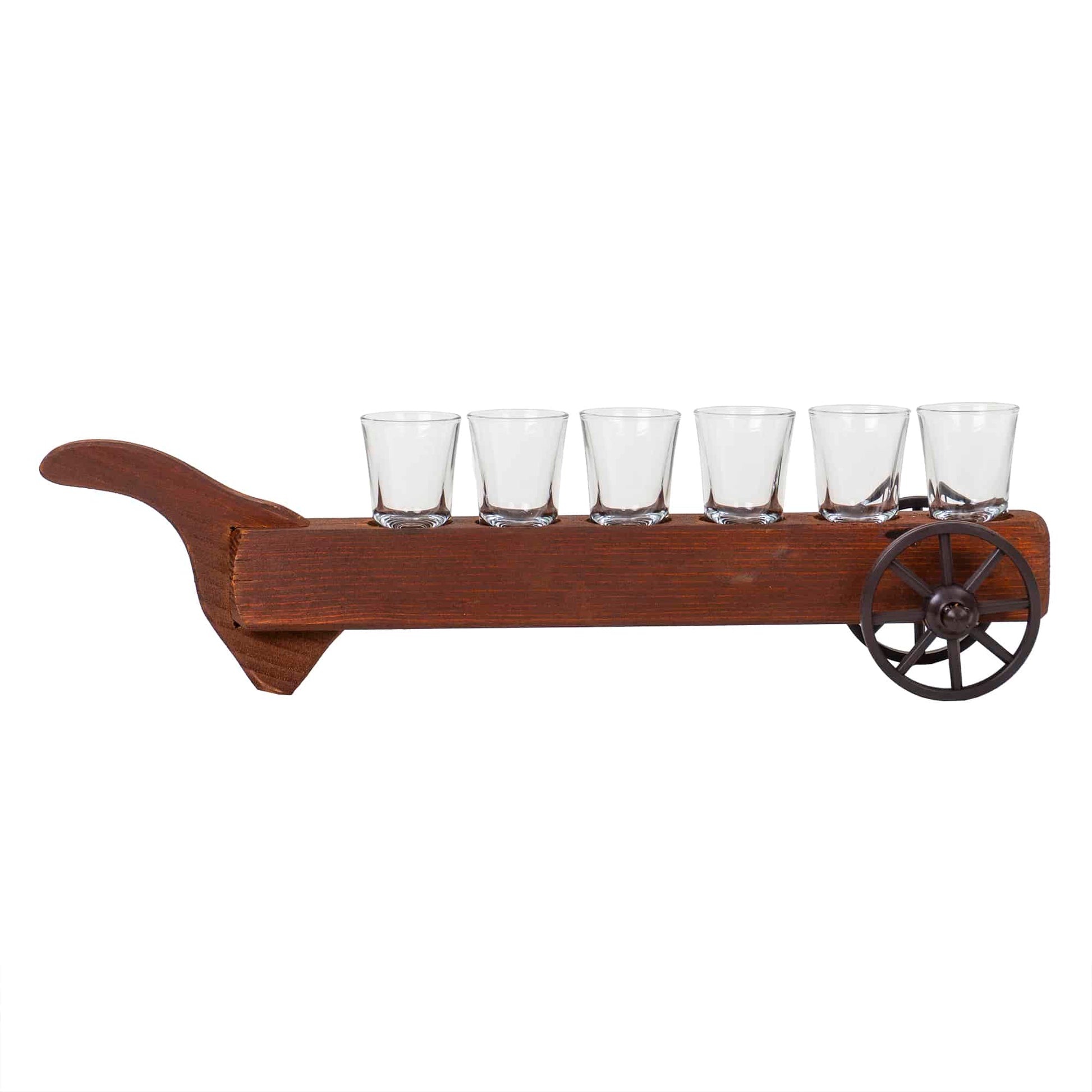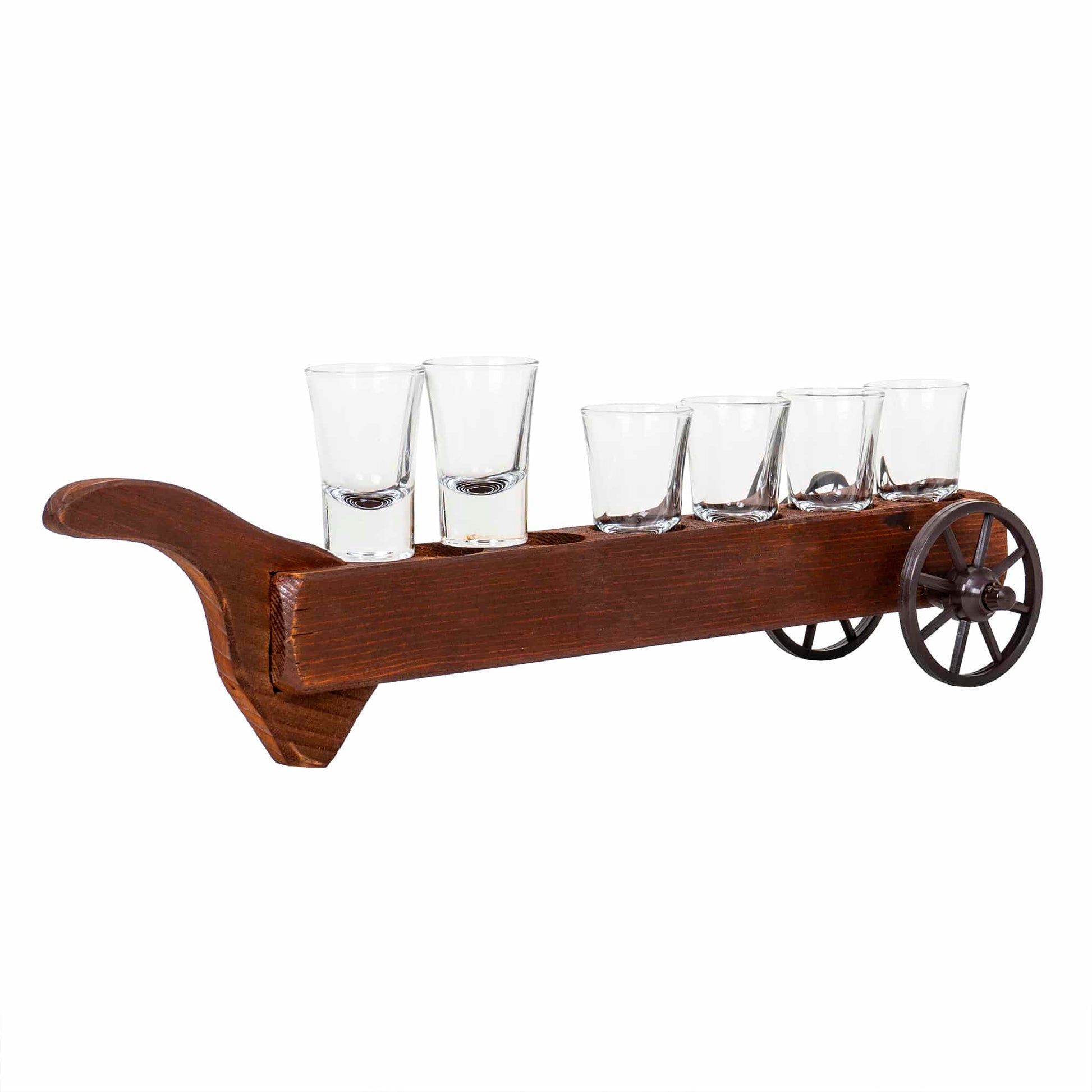 Set 6 pahare, suport lemn cu roti, 50ml.