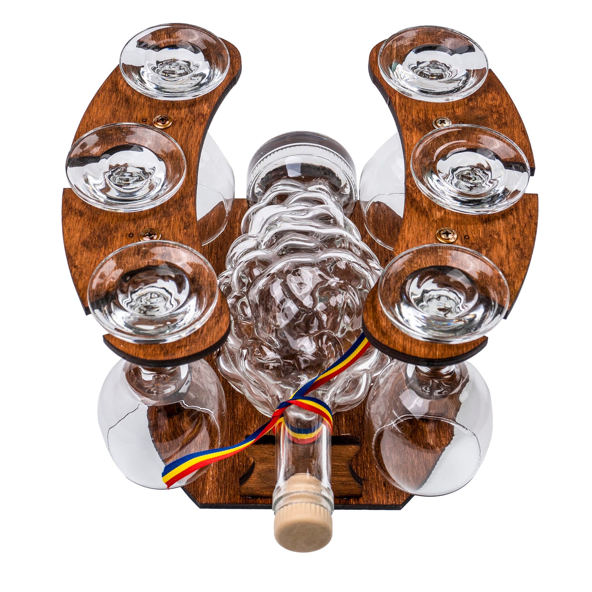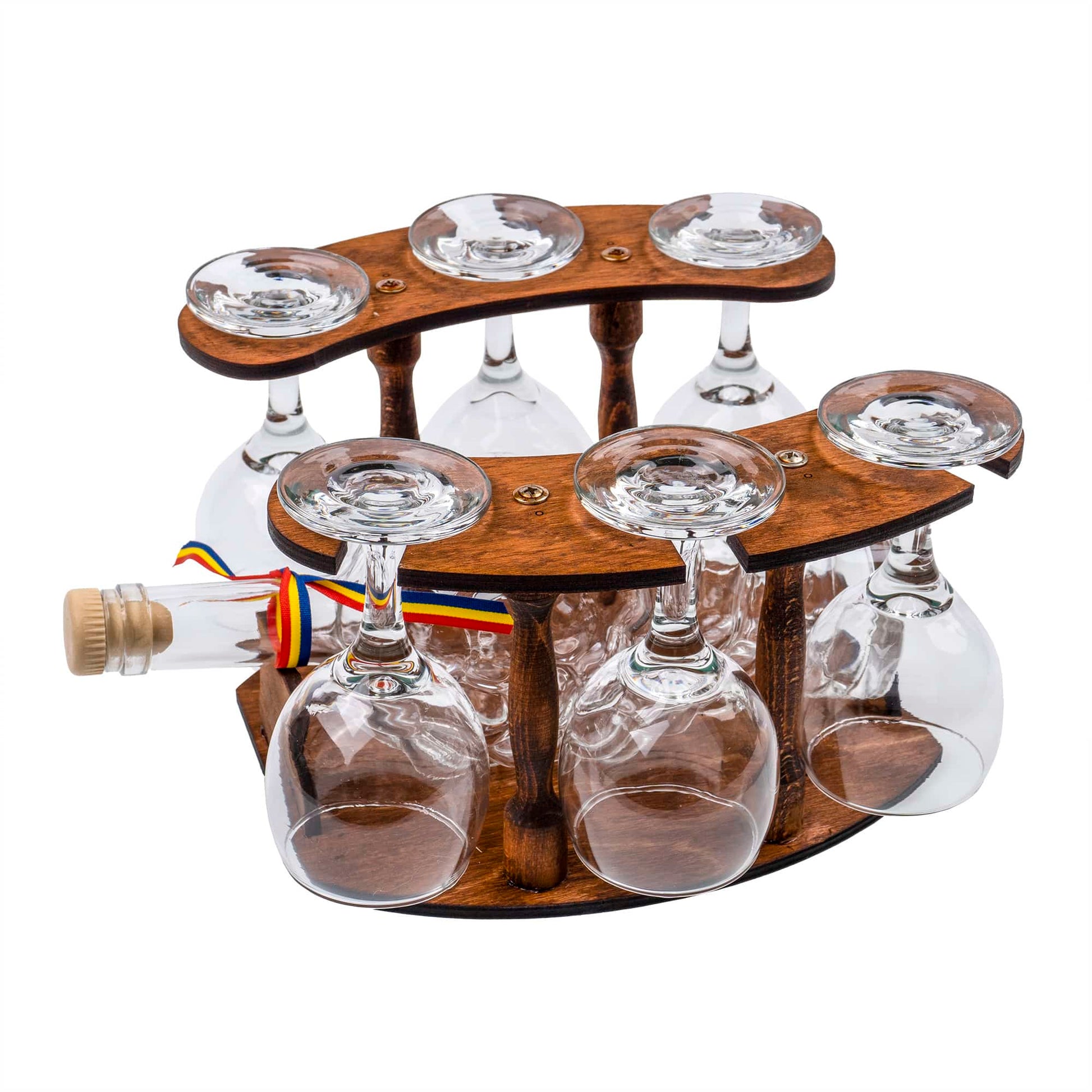 Set 6 pahare vin cu sticla pe suport / EXT 5645