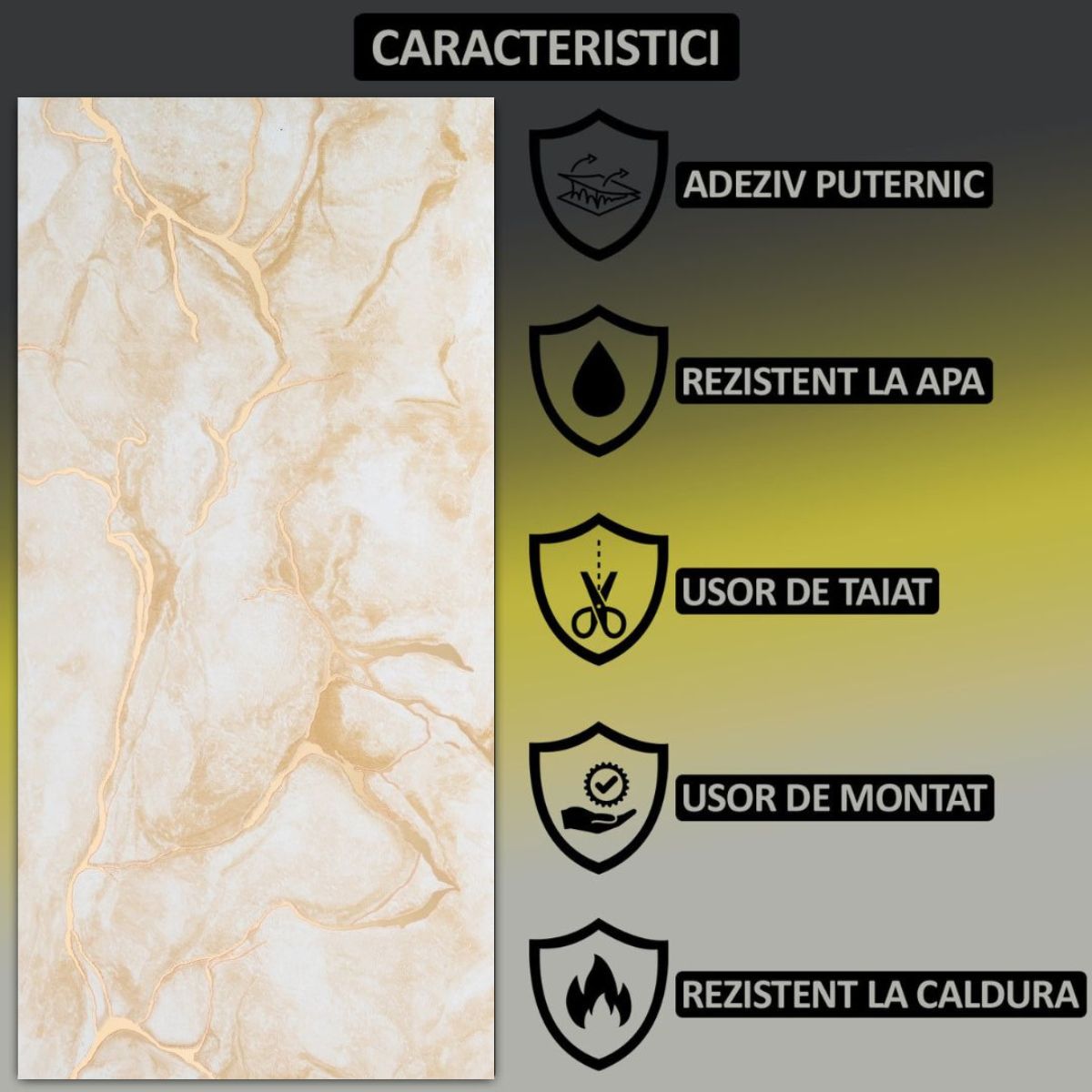 Panourile sunt fabricate din spuma EVA cu strat de aluminiu pentru durabilitate sporita si un finisaj lucios tip marmura.