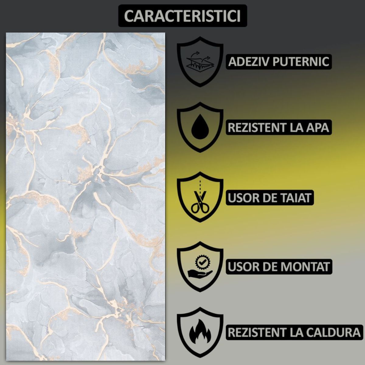 Panourile sunt fabricate din spuma EVA cu strat de aluminiu pentru durabilitate sporita si un finisaj lucios tip marmura.