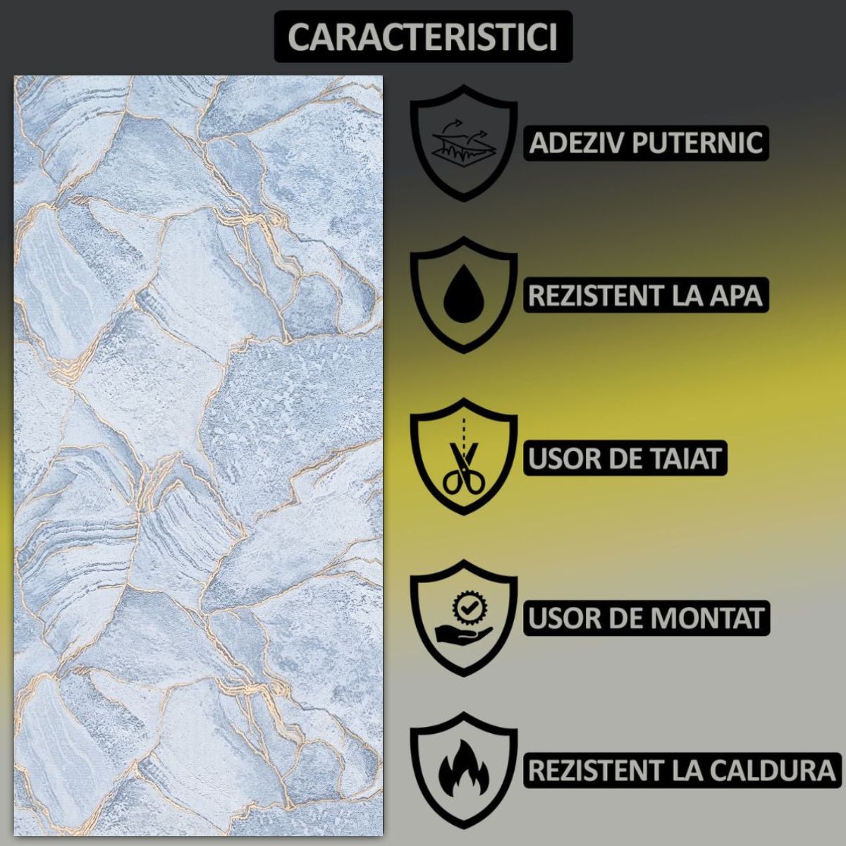 Panourile sunt fabricate din spuma EVA cu strat de aluminiu pentru durabilitate sporita si un finisaj lucios tip marmura.
