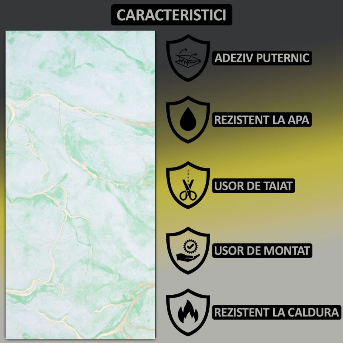 Panourile sunt fabricate din spuma EVA cu strat de aluminiu pentru durabilitate sporita si un finisaj lucios tip marmura.