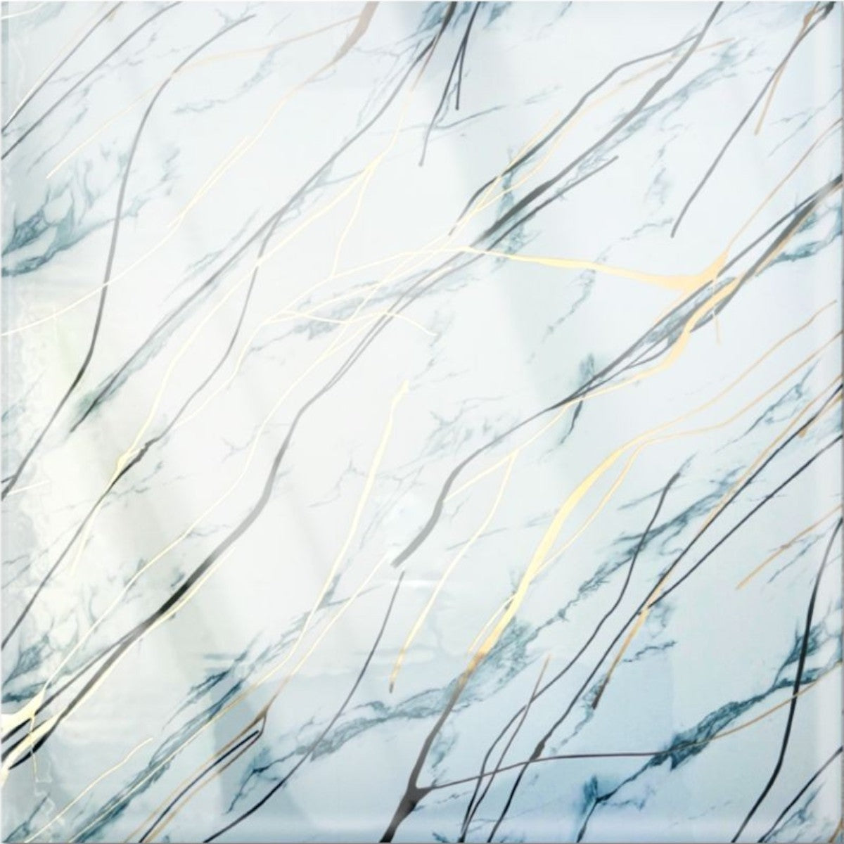 Set 6 panouri decorative autoadezive cu folie de aluminiu, efect marmura, suprafata acoperita 1.08 m², Naimeed D7125, 60x30 cm, Alb/Albastru